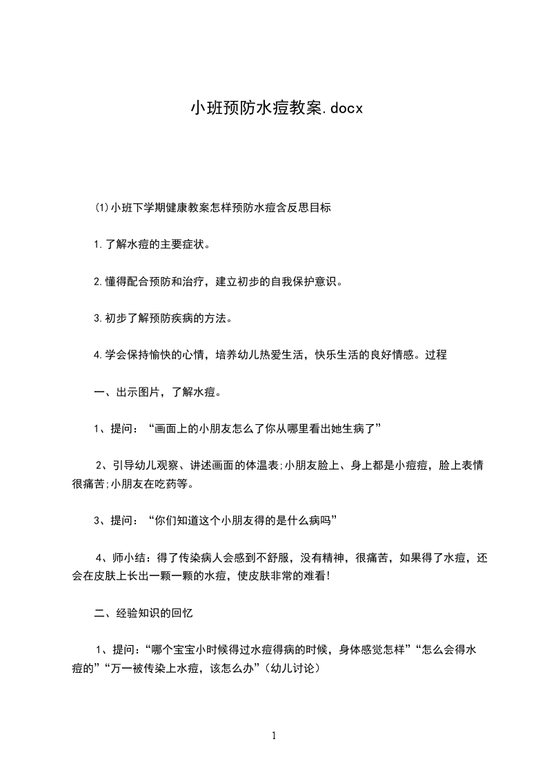 (1)小班下学期健康教案怎样预防水痘含反思目标