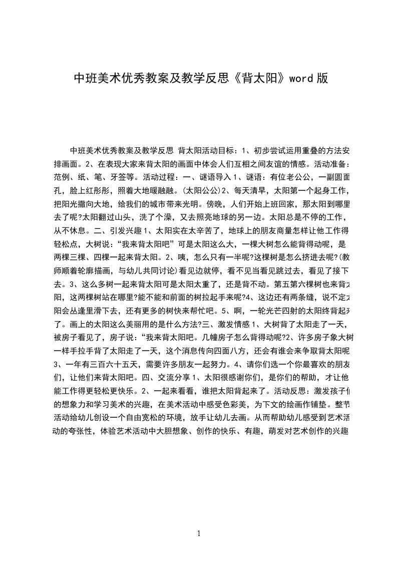 (1)谜语导入:一个勤劳小宝宝,天一亮就上工,若有一日不见他,不是下雨就刮风。让幼儿猜出谜底(太阳)。
