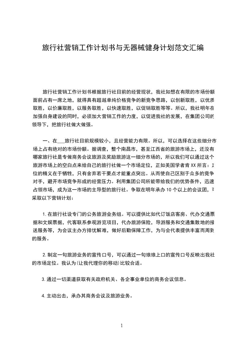 旅行社营销工作计划书根据旅行社目前的经营现状,我社如想在有限的市场份额面前占有一席之地,就得具有超越单纯价格竞争的新竞争思路,以创新取胜,以优质取胜,以价廉取胜,以服务取胜,以快速取胜,以促销取胜等等。所以,我社明年在加强自身建设的同时,必须加大营销工作的力度,以促进我社的发展,在集团公司的领导下,把旅行社做大做强。