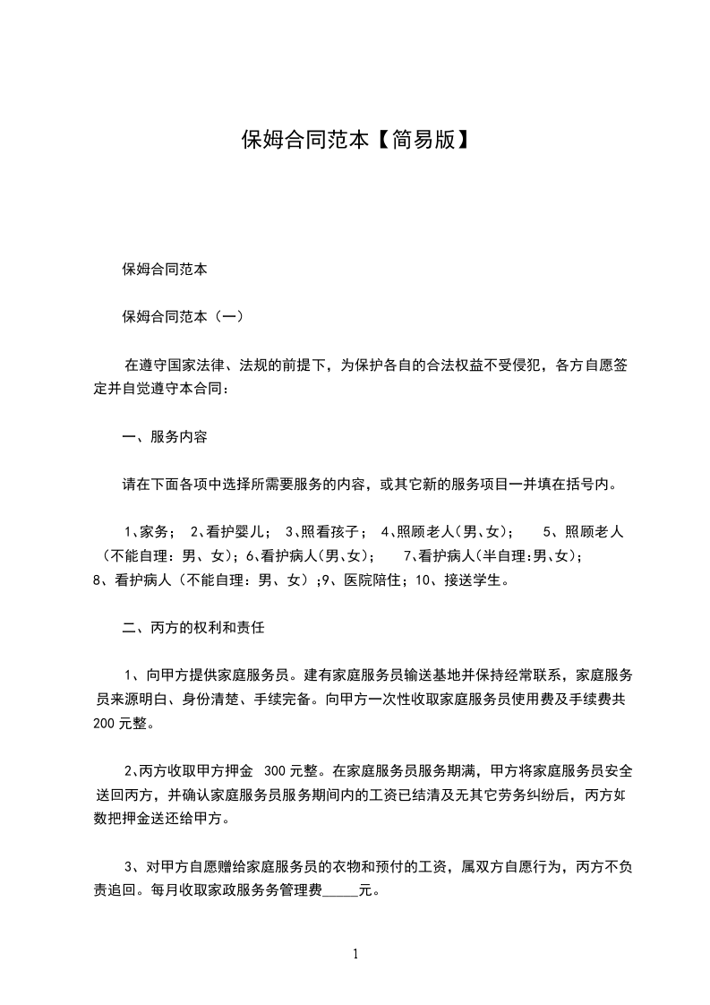 1、甲方愿意接受乙方为其做家政服务;接受丙方为乙方的担保人。自愿签订此合同。