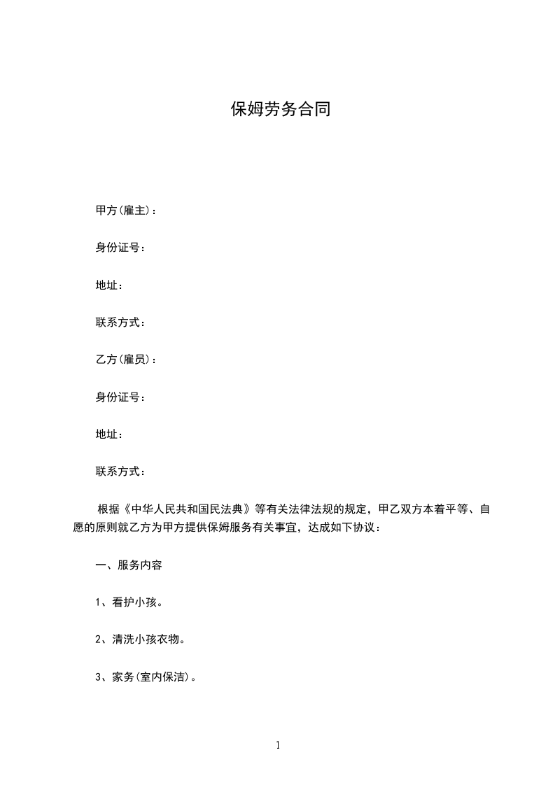 1、甲方愿意接受乙方为其做家政服务;接受丙方为乙方的担保人。自愿签订此合同。