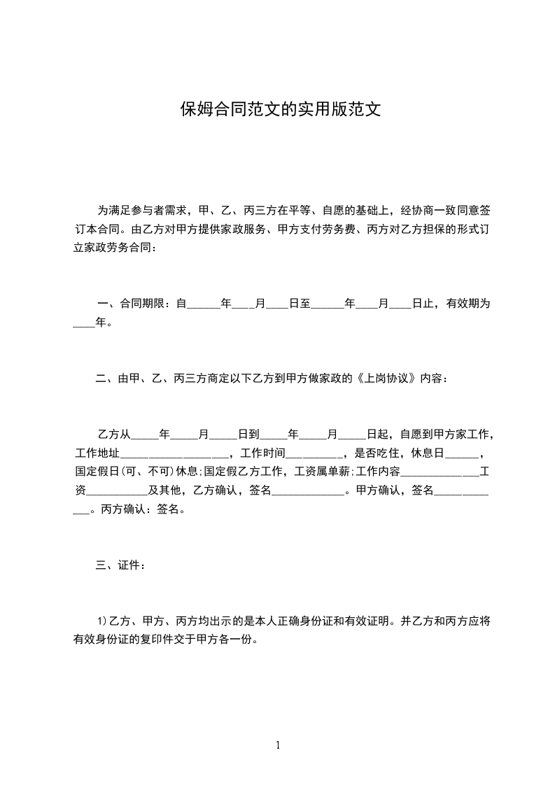 保姆合同范文的实用版范文