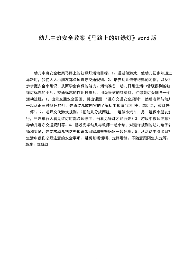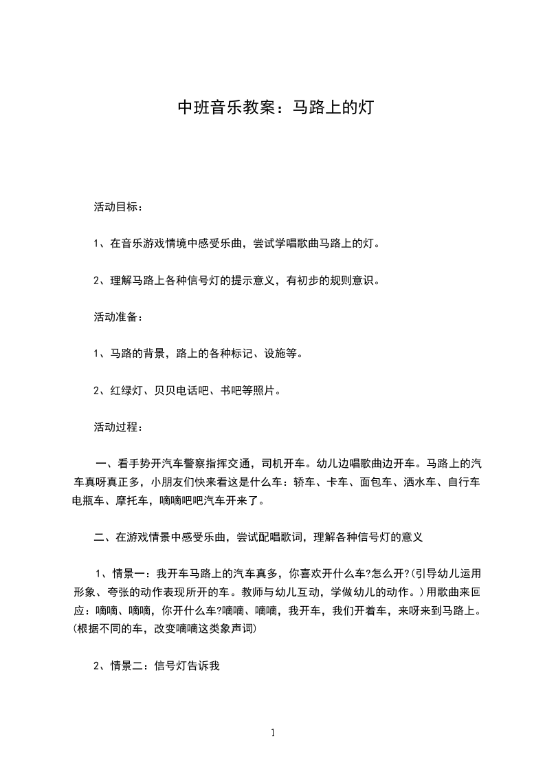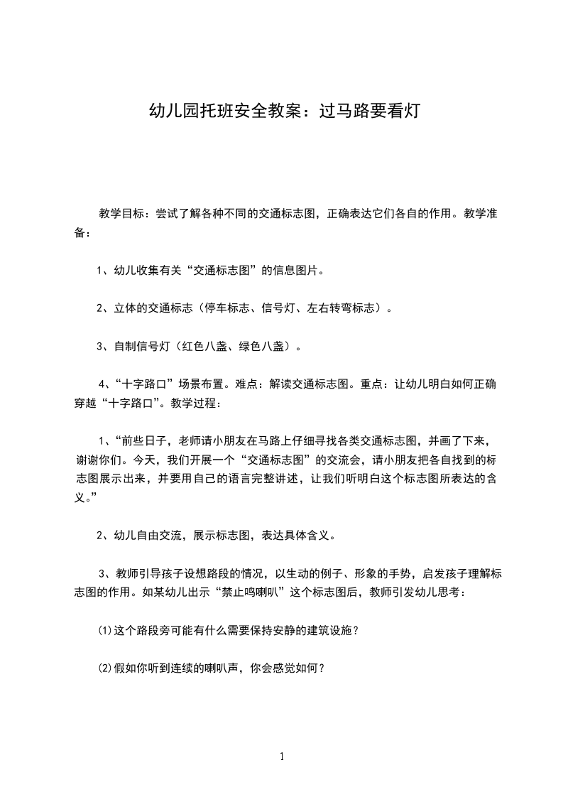 9、游戏:过马路要看灯幼儿分成信号灯、行人两类角色,自由体验生活。教师引导孩子正确做好信号灯的闪亮工作。(幼儿站在小椅子,手持红、绿两种灯作准备状。处于十字路口的八盏信号灯,要有规律地轮换跳动,为确保幼儿调换红绿信号灯这一动作的整齐性,他们以倒数101的齐声念读为辅助手段,进行合理操作)。A、幼儿徒步行走在人行道上。B、幼儿学做开汽车状,穿梭于马路上,面对交通标志,正确识别,认真开车,最后把车停靠在停车场,结束活动。
