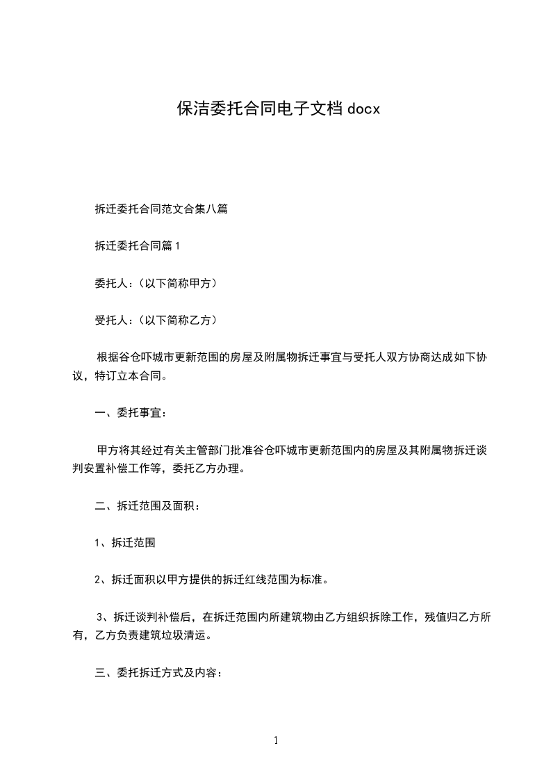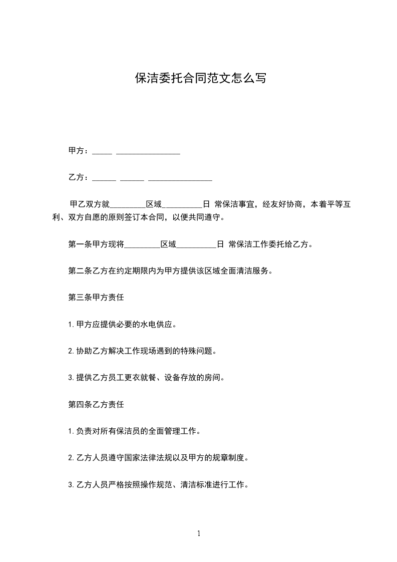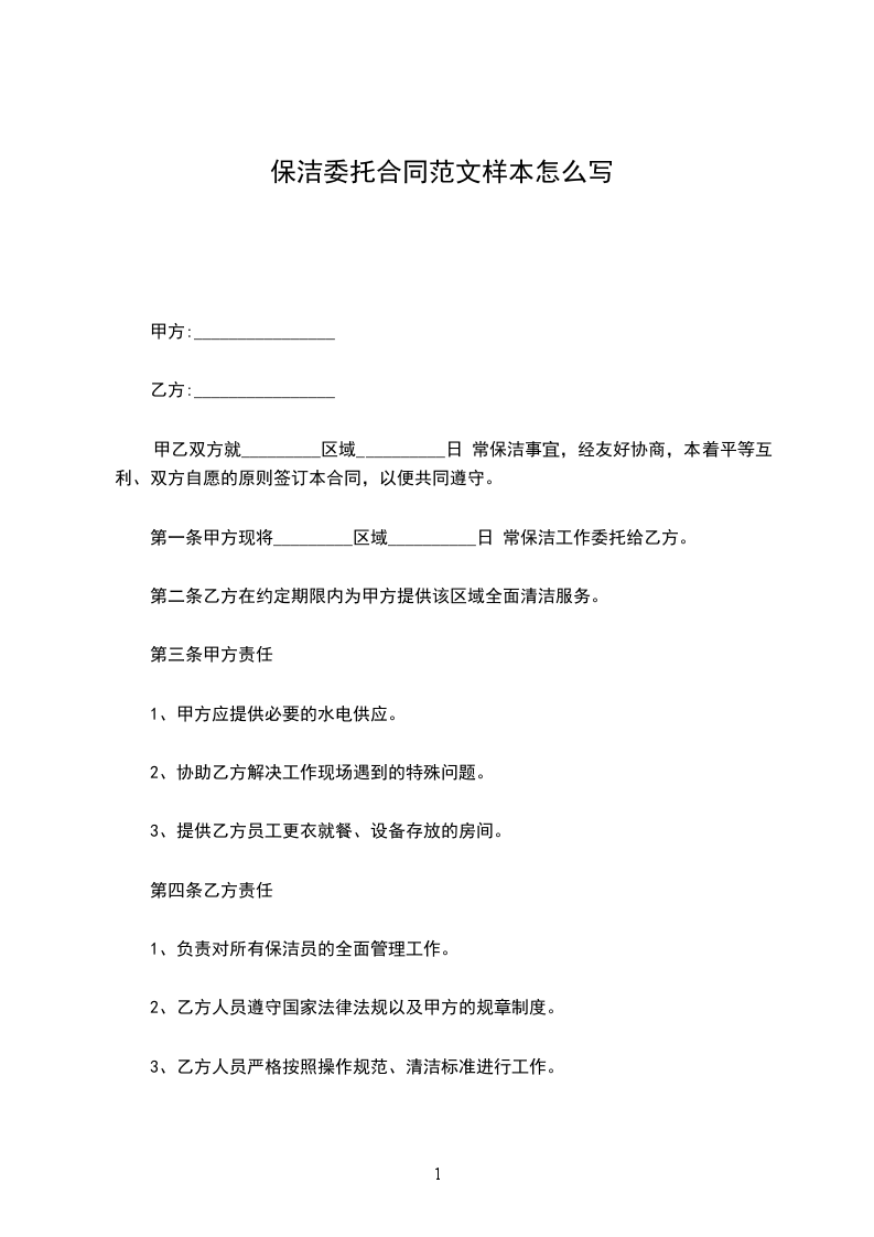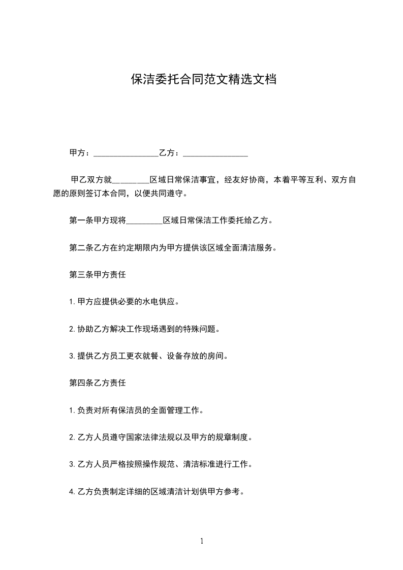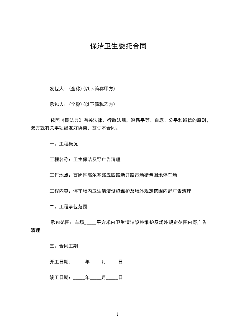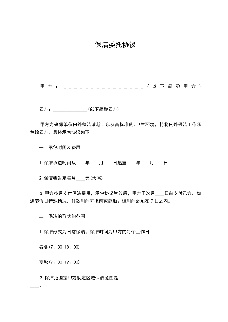 第一条甲方现将_________区域日常保洁工作委托给乙方。