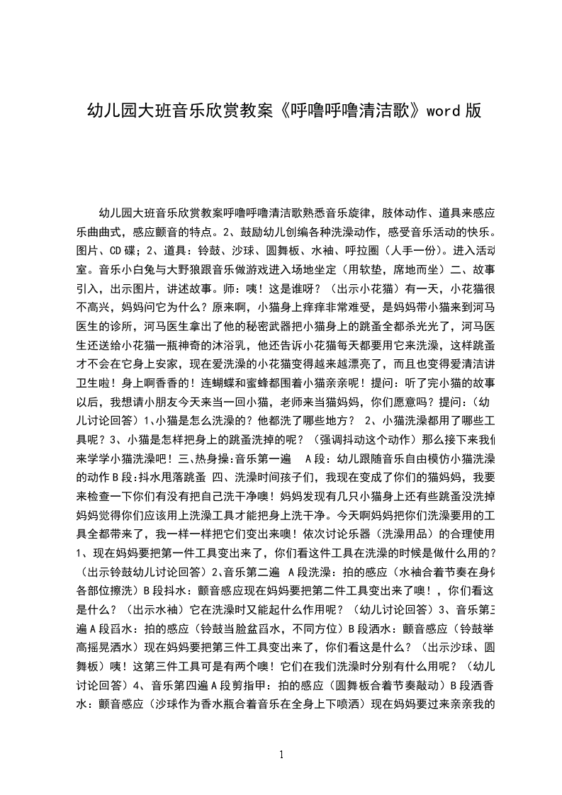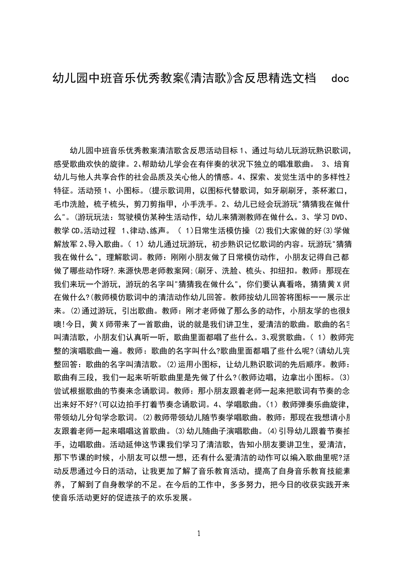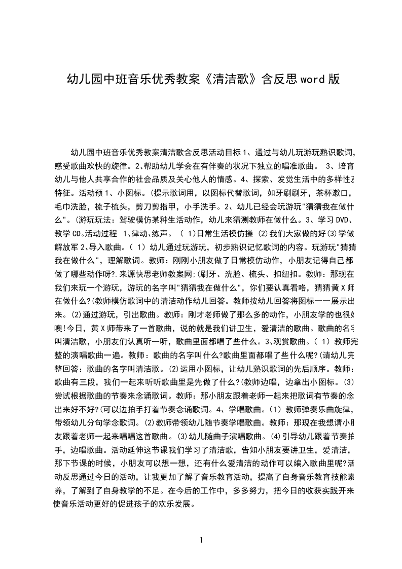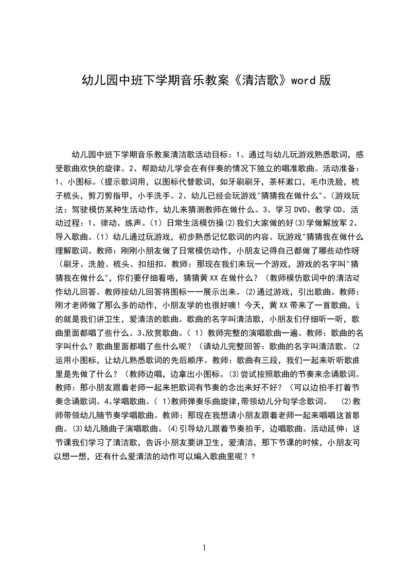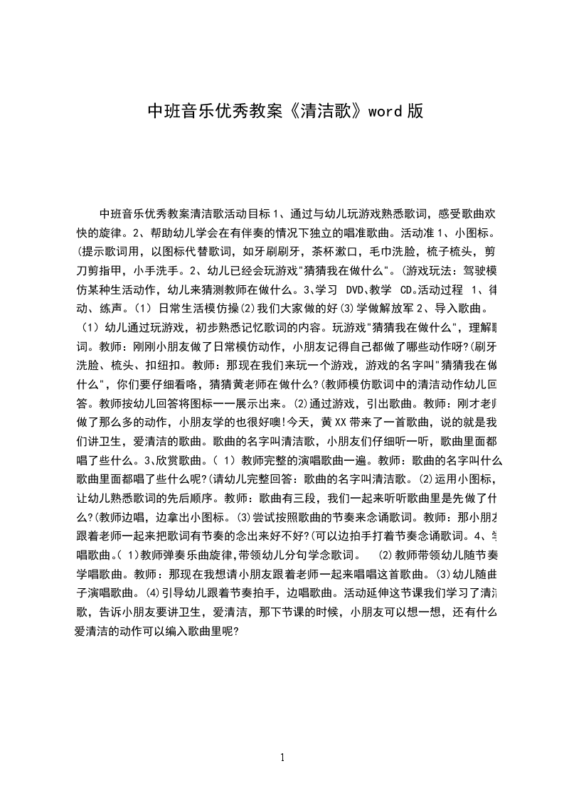 中班音乐优秀教案清洁歌活动目标