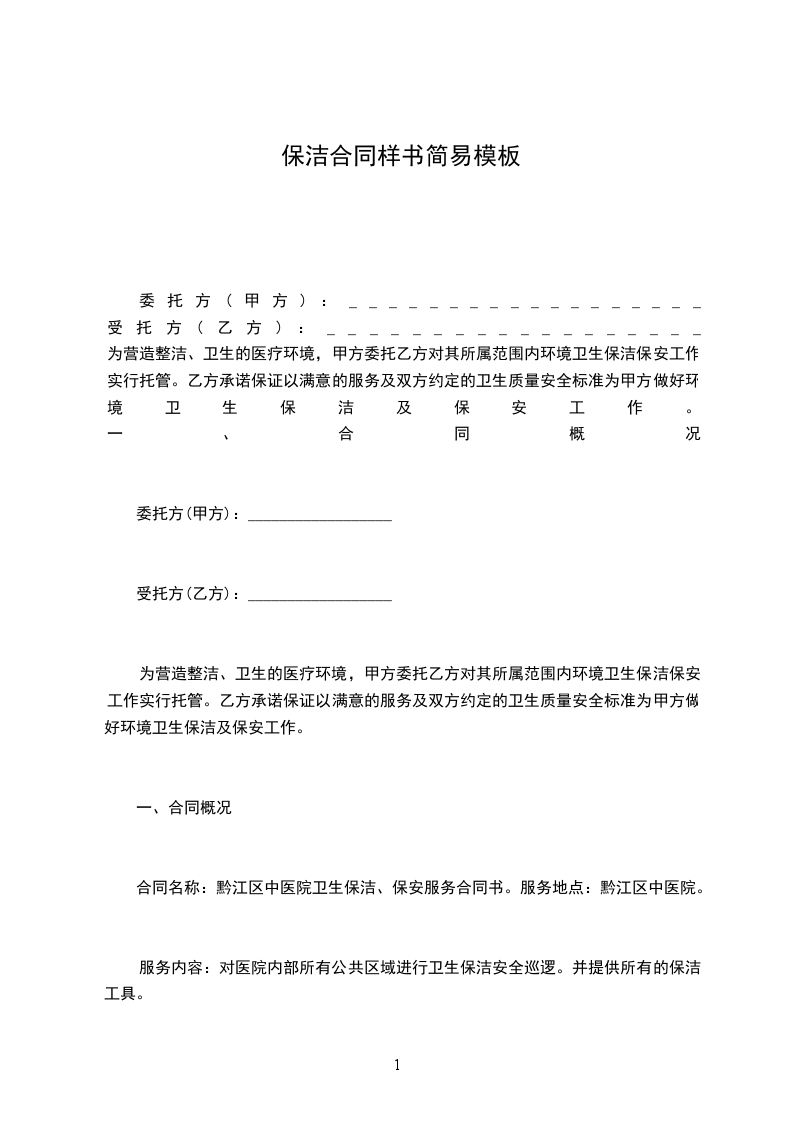 合同名称:黔江区中医院卫生保洁、保安服务合同书。服务地点:黔江区中医院。