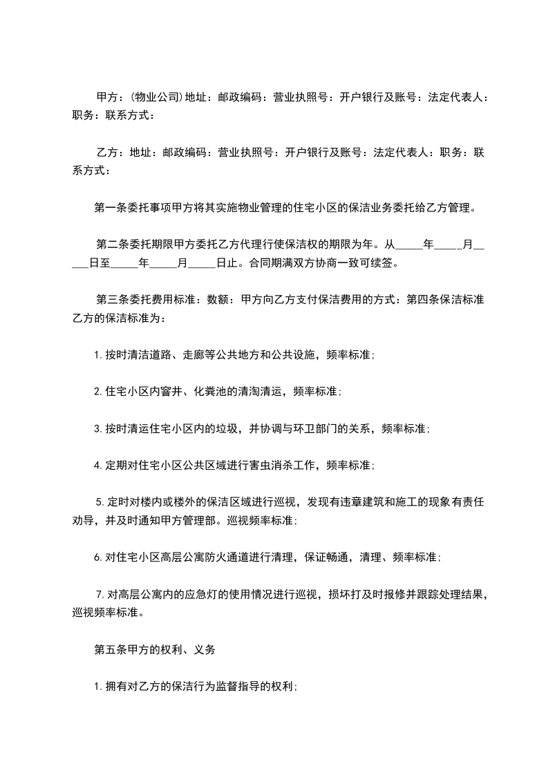 为营造整洁、卫生的医疗环境,甲方委托乙方对其所属范围内环境卫生保洁保安工作实行托管。乙方承诺保证以满意的服务及双方约定的卫生质量安全标准为甲方做好环境卫生保洁及保安工作。