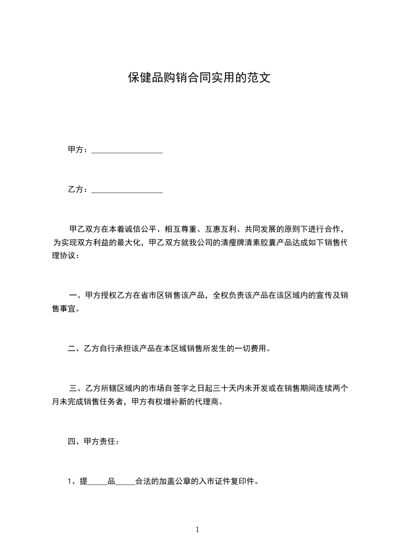 甲乙双方在本着诚信公平、相互尊重、互惠互利、共同发展的原则下进行合作,为实现双方利益的最大化,甲乙双方就我公司的清瘦牌清素胶囊产品达成如下销售代理协议: