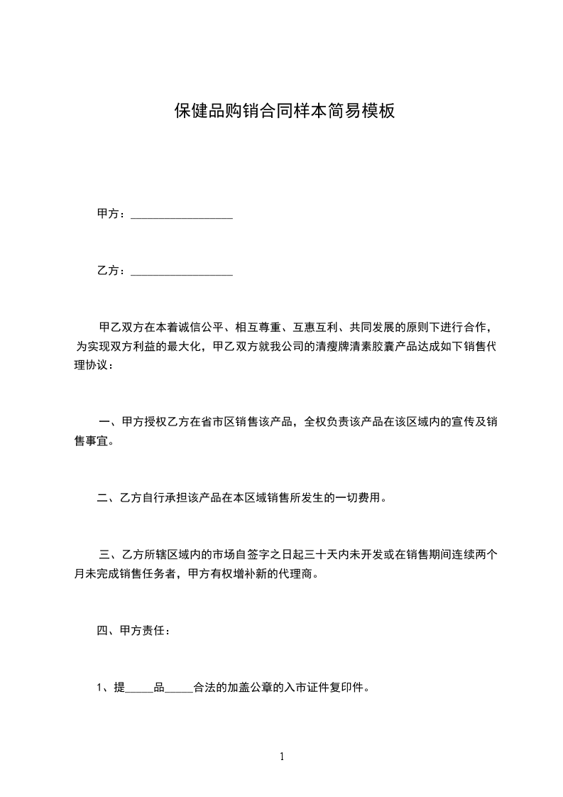 甲乙双方在本着诚信公平、相互尊重、互惠互利、共同发展的原则下进行合作,为实现双方利益的最大化,甲乙双方就我公司的清瘦牌清素胶囊产品达成如下销售代理协议: