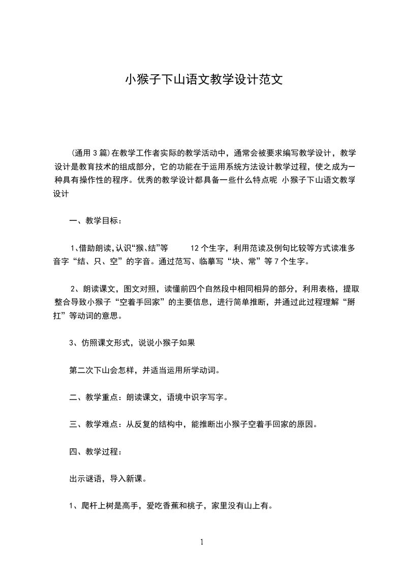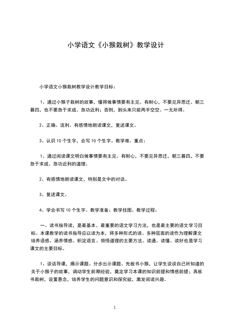 小学语文小猴栽树教学设计教学目标: