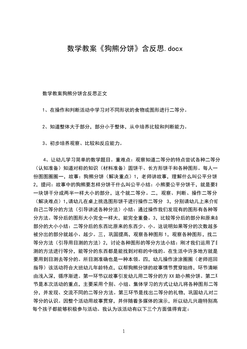 数学教案狗熊分饼含反思正文