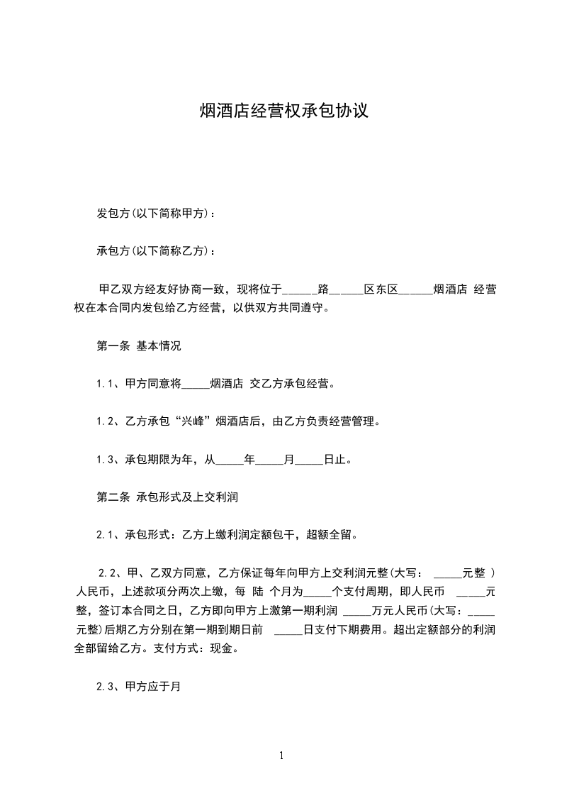 第一条、承包期限为________年,从________年____月____日至________年____月____日止。