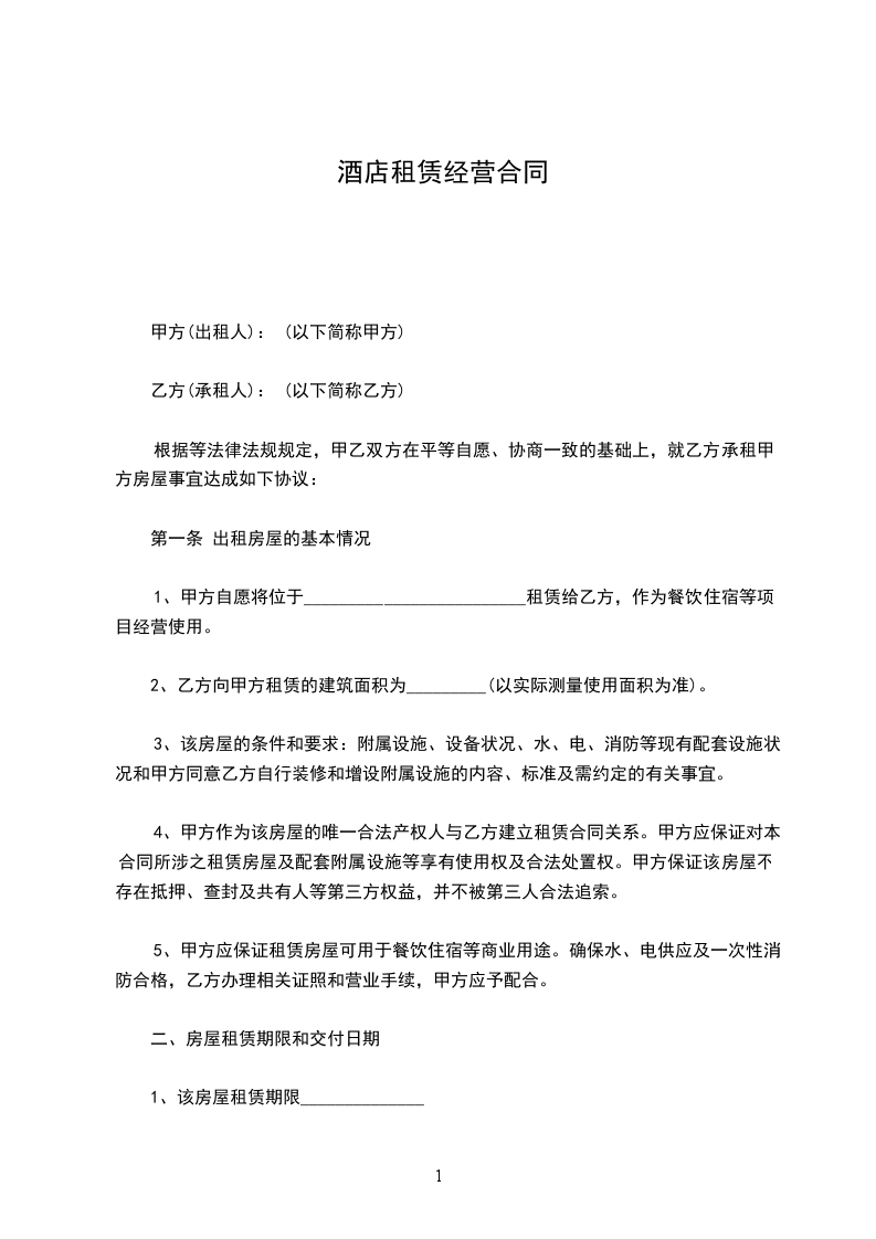 经甲乙双方通过协商,甲方同意将座落在________的________国际大酒店整体楼盘(不含临街现出租营业房,皇府酒楼)约6000平方米及酒店经营权承包给乙方经营,甲方保证拥有该房屋的所有权及酒店经营权,房屋由乙方负责部分投资装潢或改造,具体事项达成协议如下: