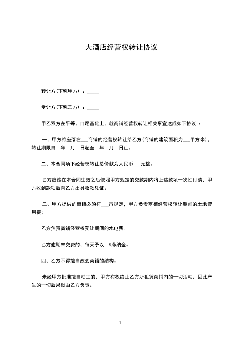 第五条、甲方在________年____月____日之前以国际大酒店有限公司的名义形成的债权债务均由甲方承担,与乙方无关;承包期内由乙方形成的债权债务由乙方负责,与甲方无关。