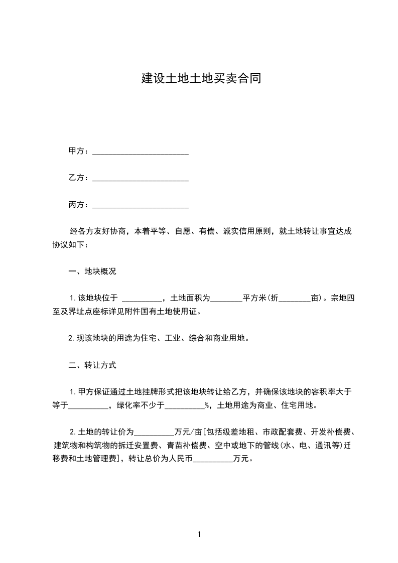 第九条本合同自双方签订之日起生效。本合同一式叁份,具有同等法律效力,甲方、乙方各执份,公证人执一份。甲方(签字):乙方(签字):年月日年月日公证人(签字)年月日土地买卖合同甲方:身份证号码:常住地址:联络方式:乙方:身份证号码:常住地址:联络方式:甲、乙双方就合作购置土地事宜,经平等协商订立本合同,以资共同遵守: