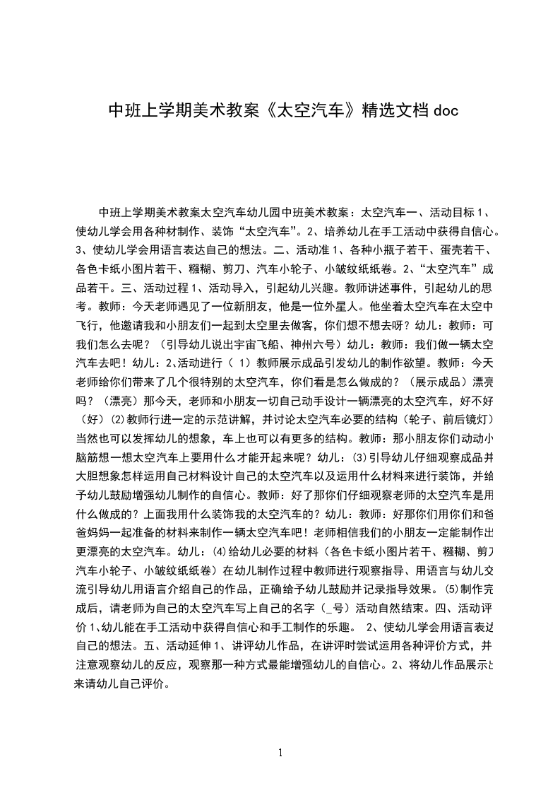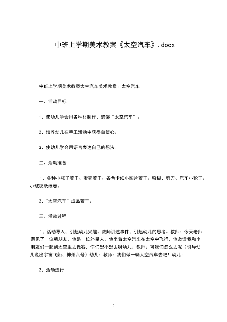 中班上学期美术教案太空汽车美术教案:太空汽车