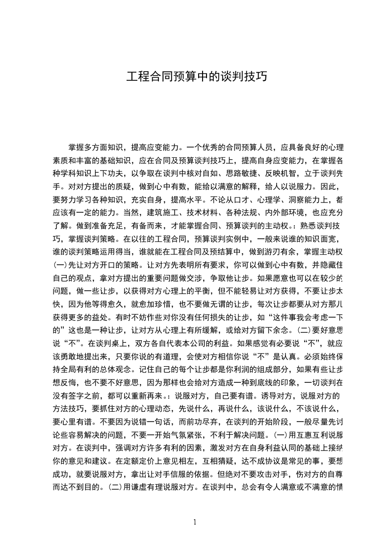 1.掌握谈判议程,合理分配各议题的时间工程建设这样的大型谈判一定会涉及诸多需要讨论的事项,而各谈判事项的重要性不同,谈判各方对同一事项的关注程度也不相同。成功的谈判者善于掌握谈判的进程,在充满合作气氛的阶段,展开自己所关注的议题的商讨,从而抓住时机,达成有利于己方的协议而在气氛紧张时,则引导谈判进入双方具有共识的议题,一方面缓和气氛,另一方面缩小双方差距,推进谈判进程。同时,谈判者应懂得合理分配谈判时间。对于各议题的商讨时间应得当,不要过多拘泥于细节性问题,这样可以缩短谈判时间,降低交易成本。