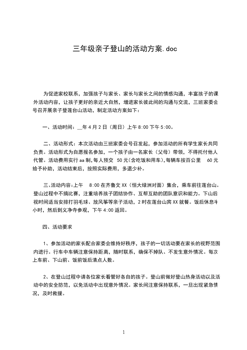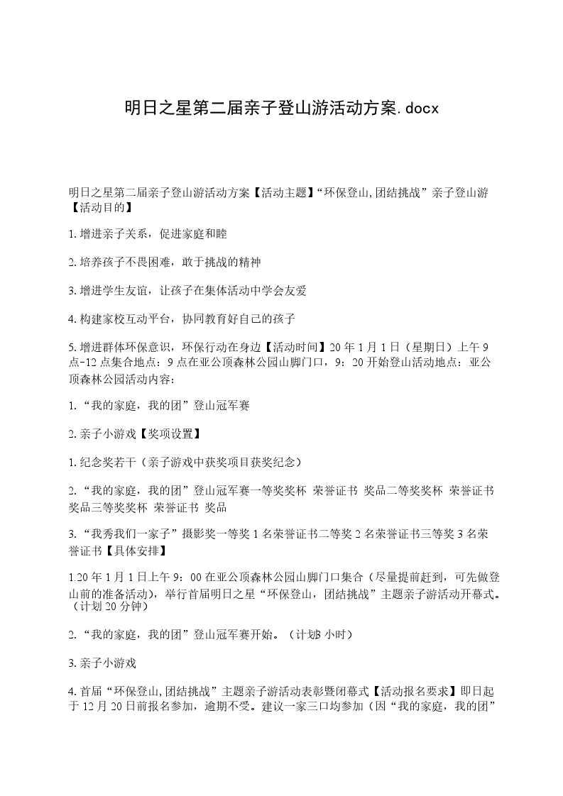 明日之星第二届亲子登山游活动方案【活动主题】“环保登山,团结挑战”亲子登山游【活动目的】