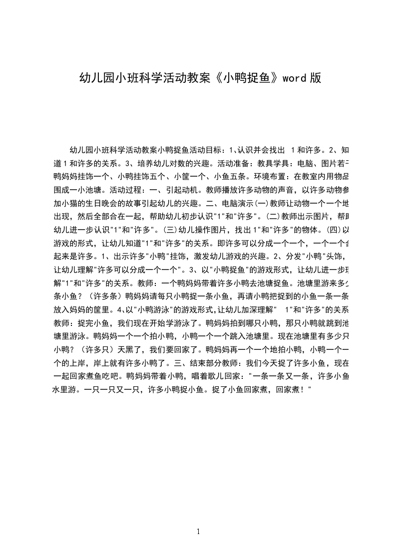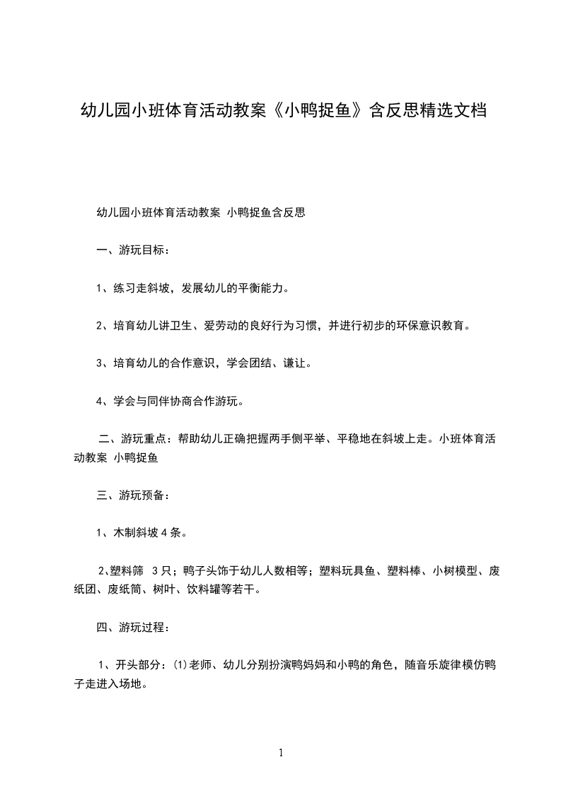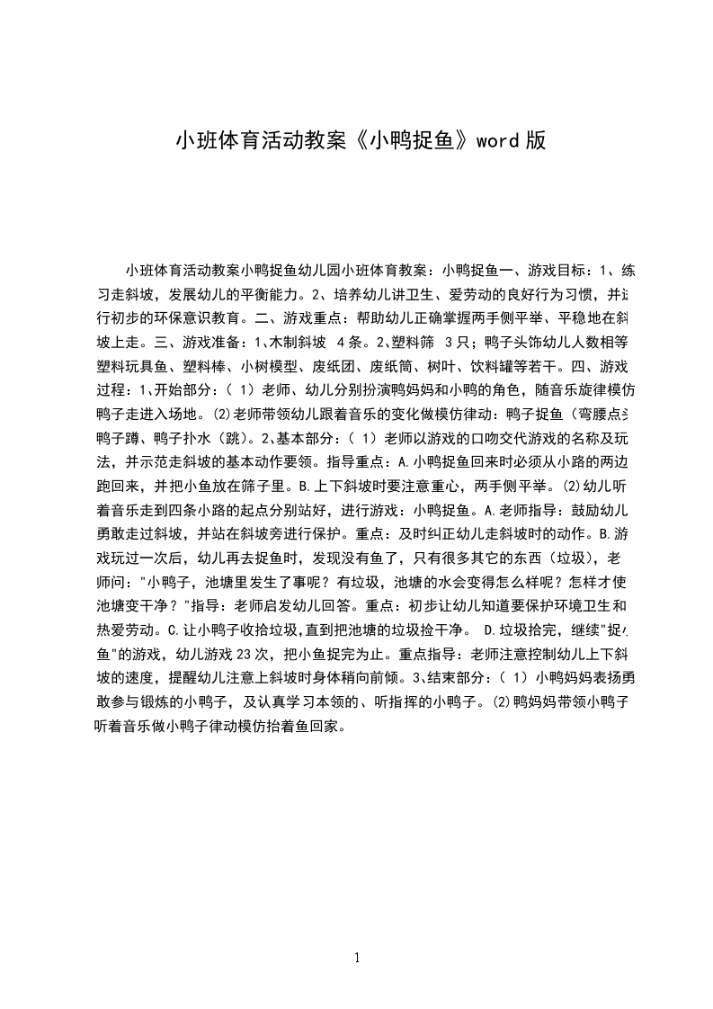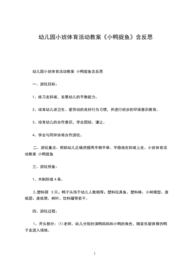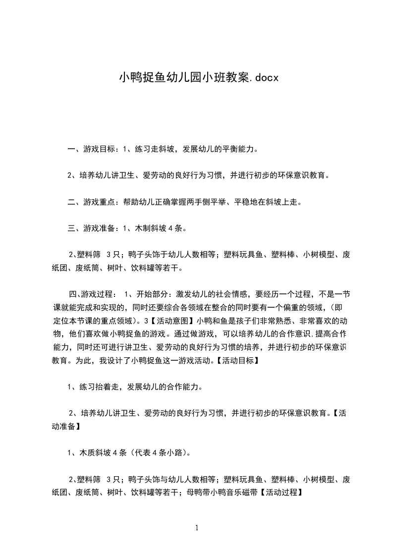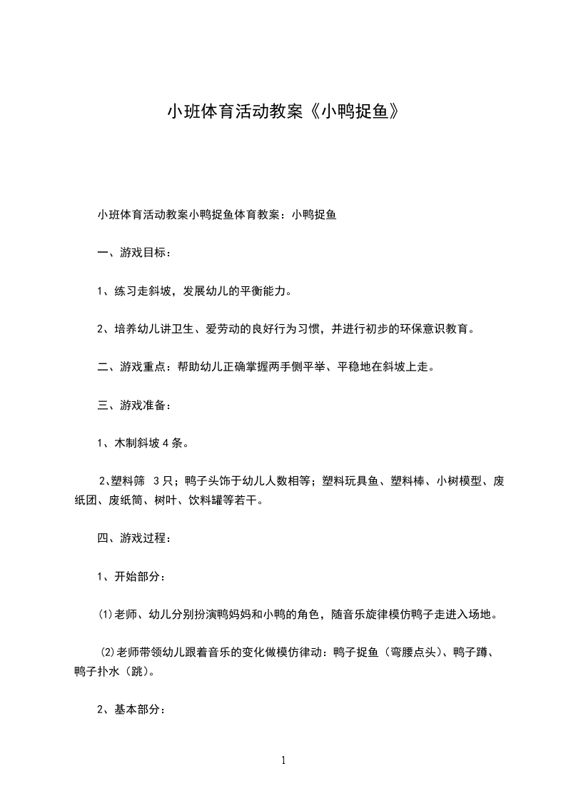 小班体育活动教案小鸭捉鱼体育教案:小鸭捉鱼