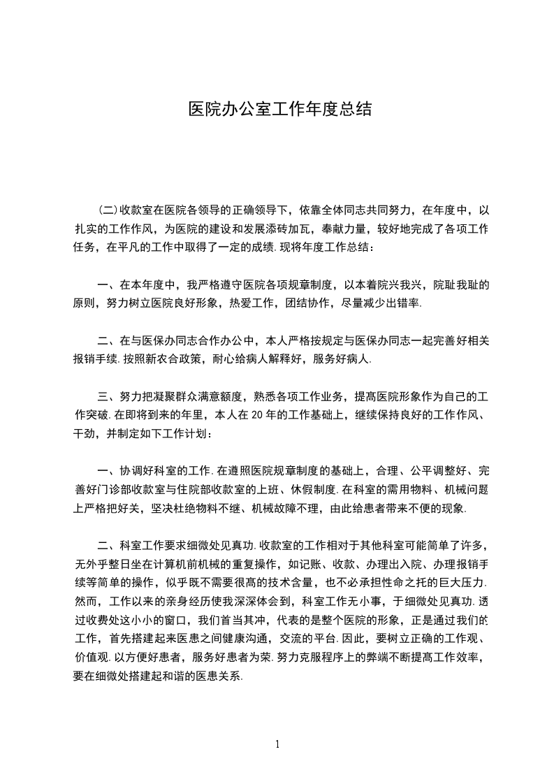 (二)收款室在医院各领导的正确领导下,依靠全体同志共同努力,在年度中,以扎实的工作作风,为医院的建设和发展添砖加瓦,奉献力量,较好地完成了各项工作任务,在平凡的工作中取得了一定的成绩.现将年度工作总结: