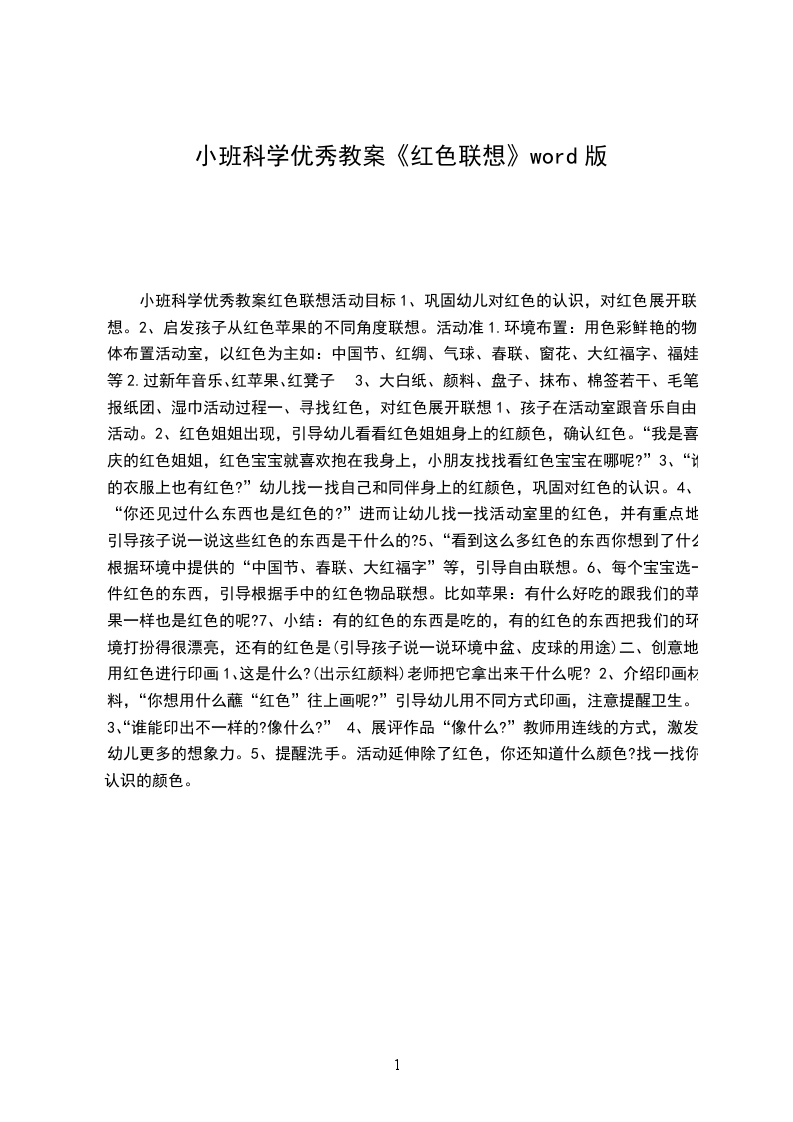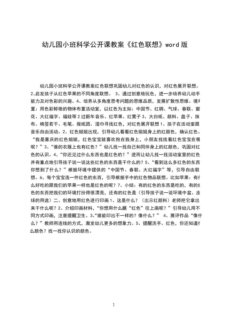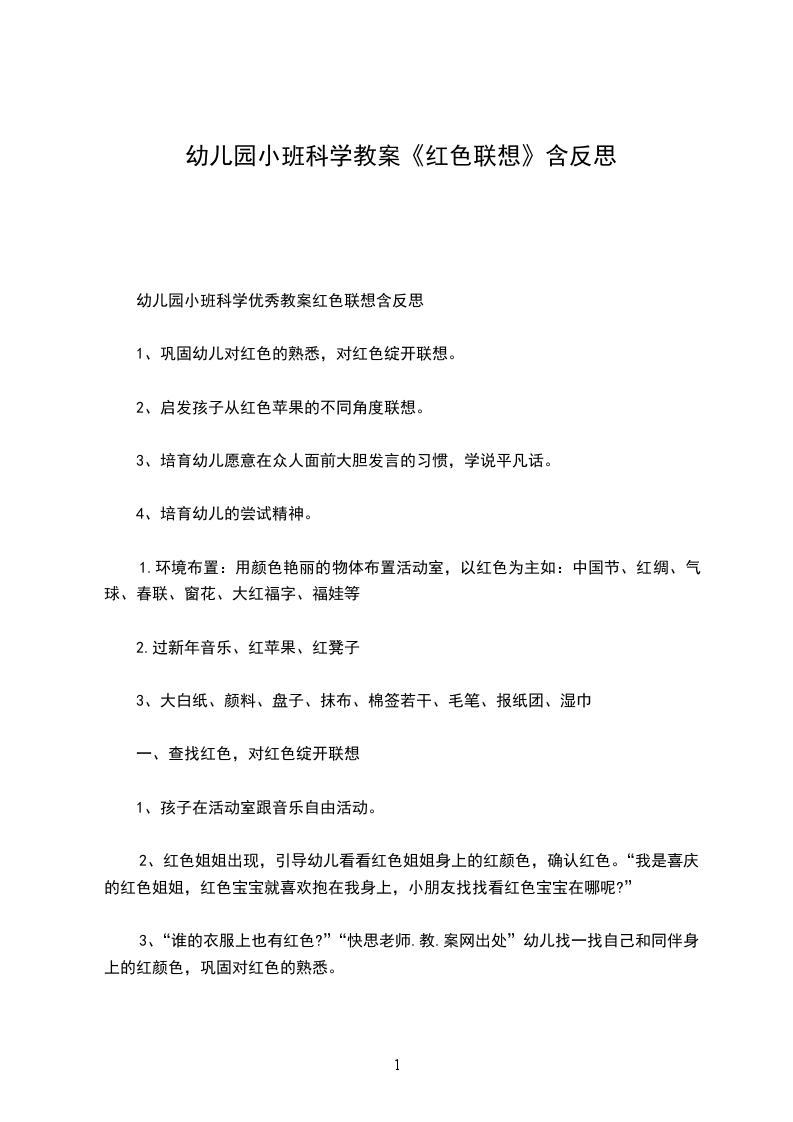 1、巩固幼儿对红色的认识,对红色展开联想。