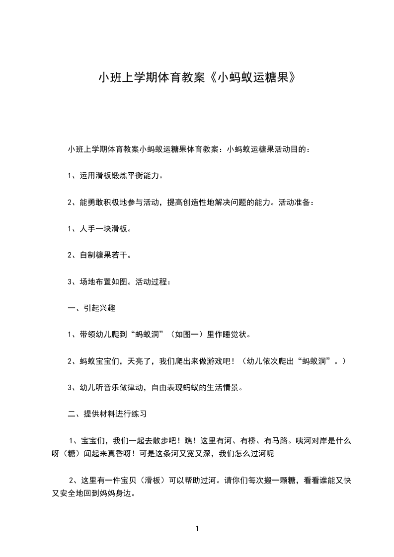 小班上学期体育教案小蚂蚁运糖果体育教案:小蚂蚁运糖果活动目的: