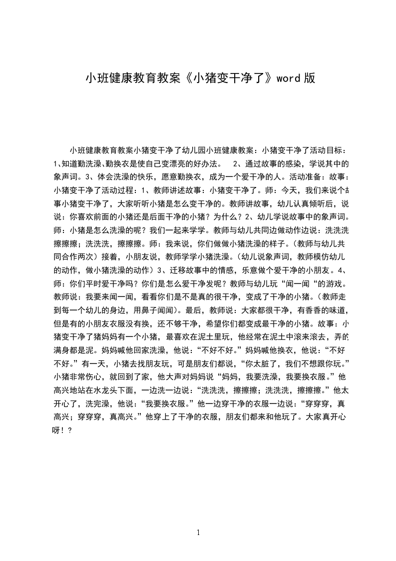 小班健康教育教案小猪变干净了健康教案:小猪变干净了活动目标: