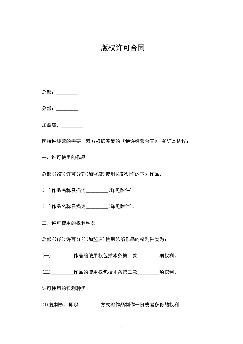 第一条权许可人以第三条所述报酬为代价,授予出者下列专有许可和权利