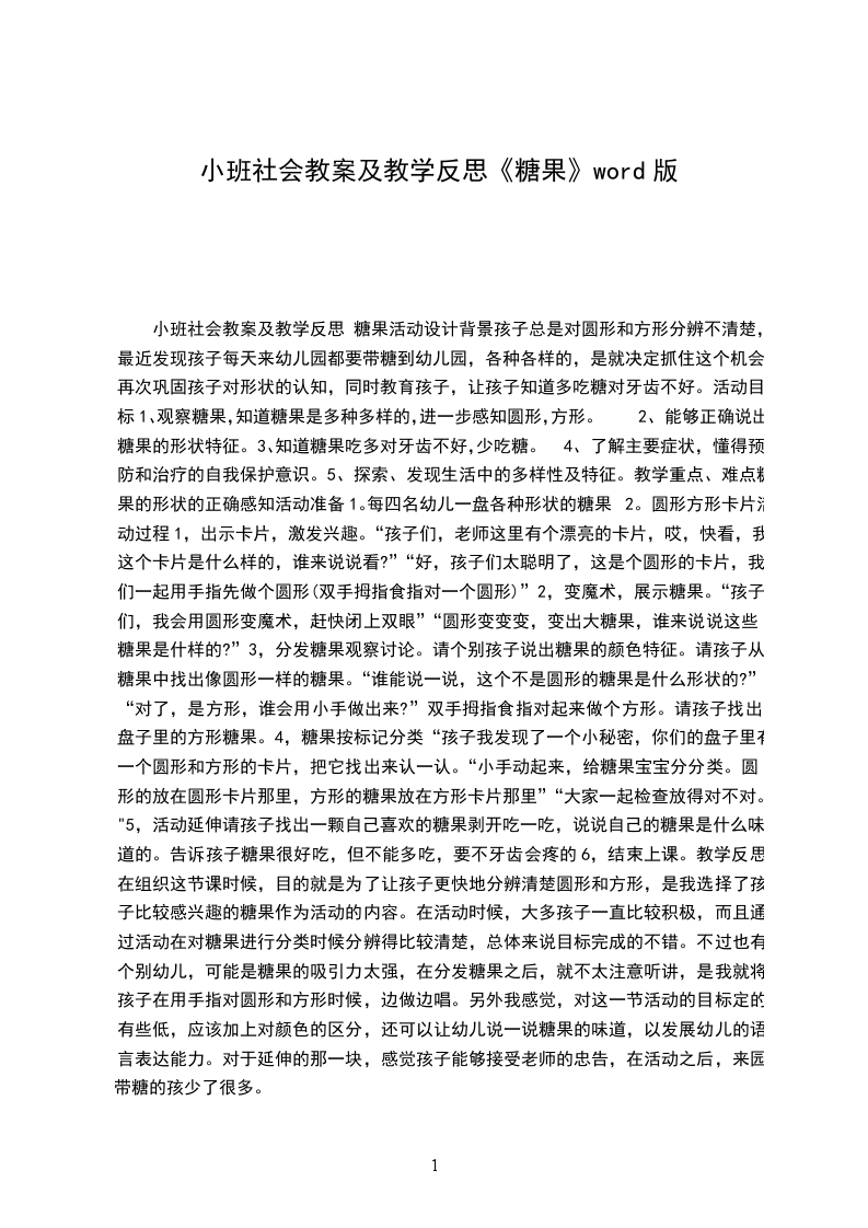 小班社会教案及教学反思糖果活动设计背景孩子总是对圆形和方形分辨不清楚,最近发现孩子每天来幼儿园都要带糖到幼儿园,各种各样的,于是就决定抓住这个机会,再次巩固孩子对形状的认知,同时教育孩子,让孩子知道多吃糖对牙齿不好。活动目标
