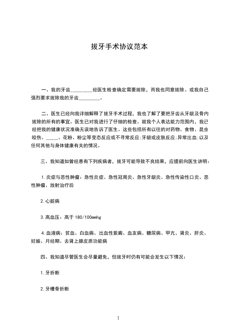 一、我的牙齿_________经医生检查确定需要拔除,而我也同意拔除。或我自己强烈要求拔除我的牙齿_________。