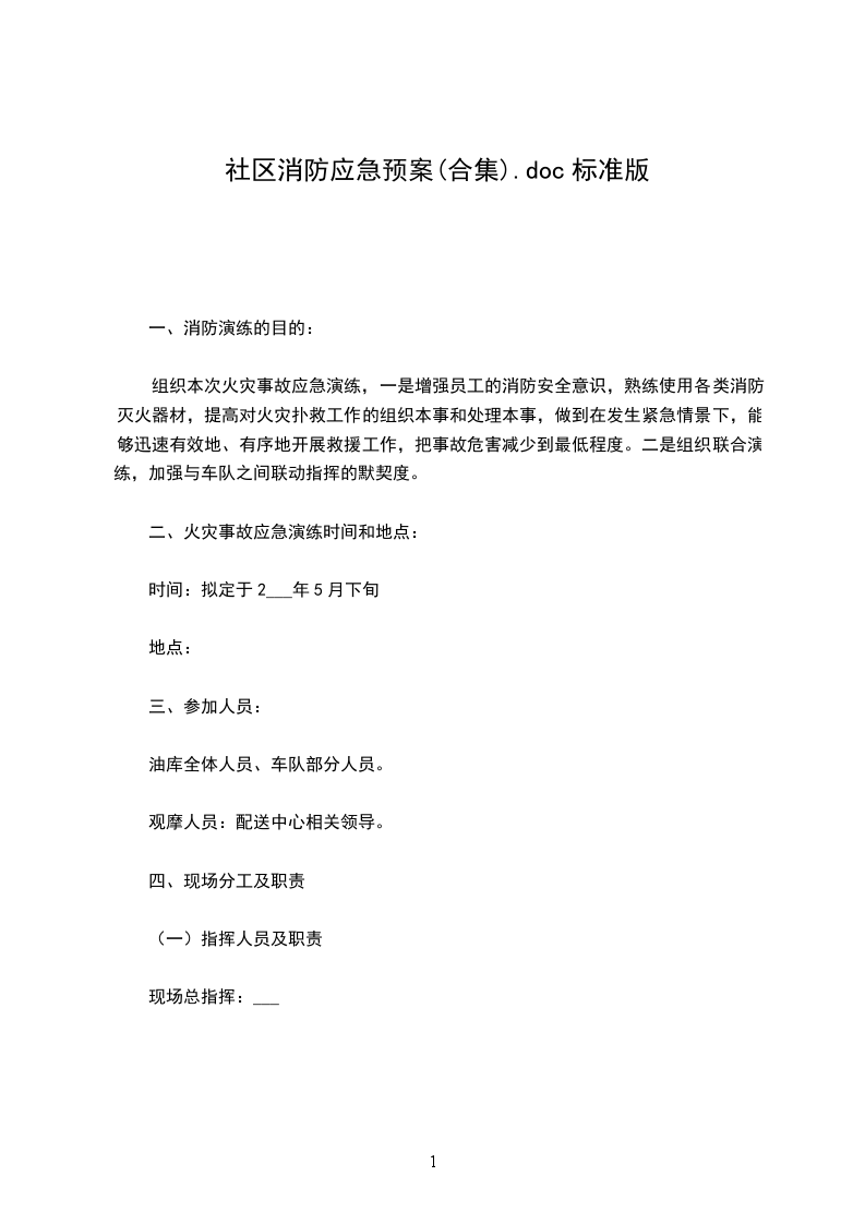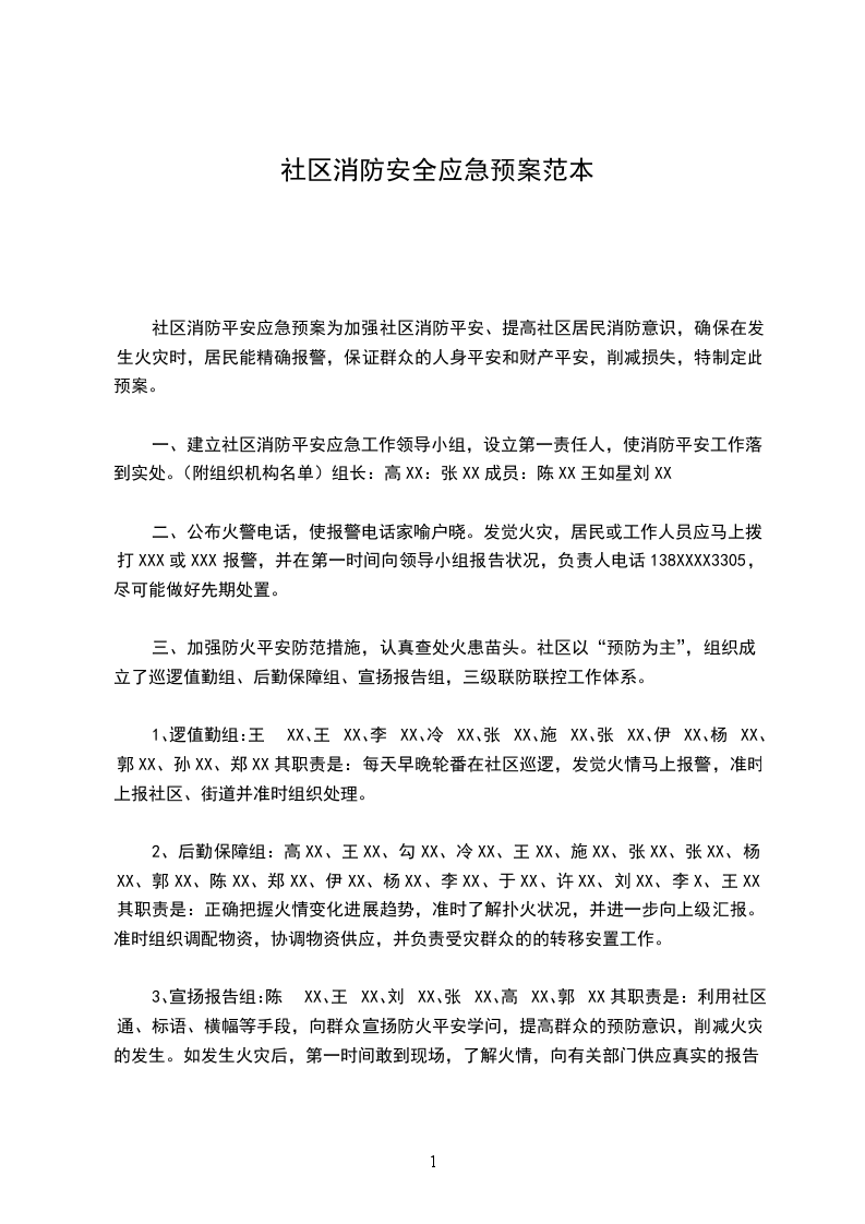 社区消防平安应急预案为加强社区消防平安、提高社区居民消防意识,确保在发生火灾时,居民能精确报警,保证群众的人身平安和财产平安,削减损失,特制定此预案。