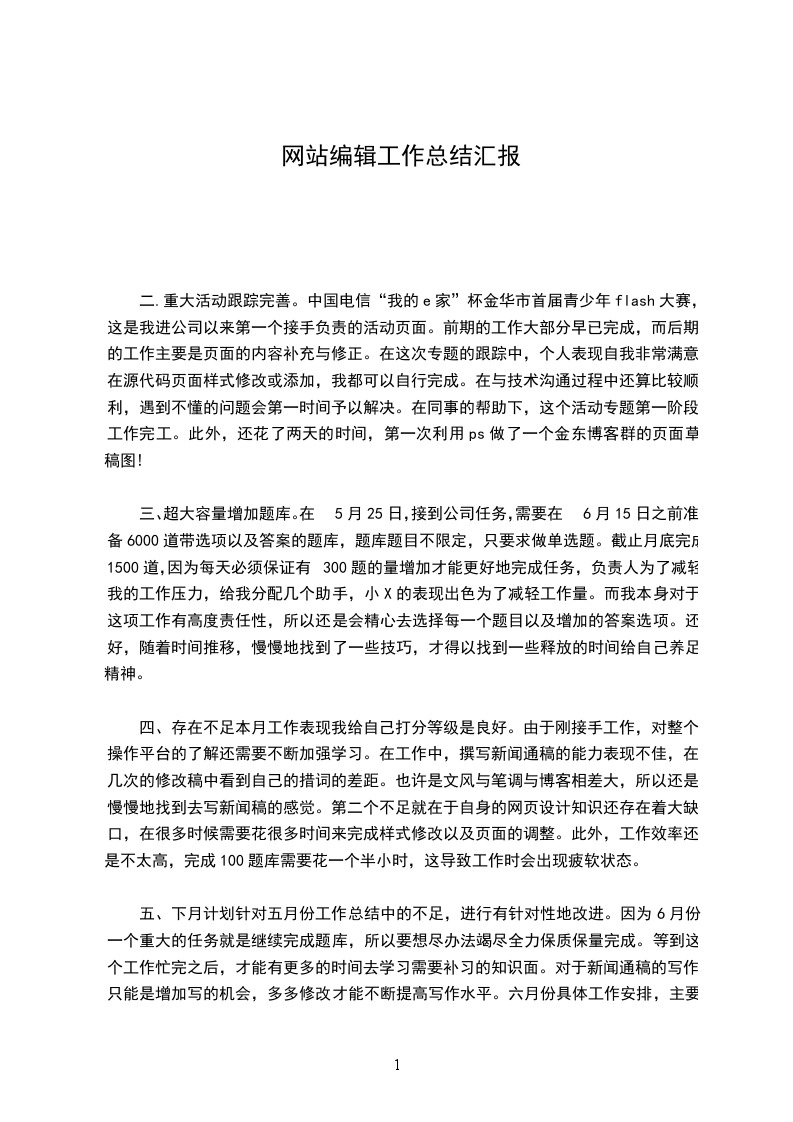 四、存在不足本月工作表现我给自己打分等级是良好。由于刚接手工作,对整个操作平台的了解还需要不断加强学习。在工作中,撰写新闻通稿的能力表现不佳,在几次的修改稿中看到自己的措词的差距。也许是文风与笔调与博客相差大,所以还是慢慢地找到去写新闻稿的感觉。第二个不足就在于自身的网页设计知识还存在着大缺口,在很多时候需要花很多时间来完成样式修改以及页面的调整。此外,工作效率还是不太高,完成100题库需要花一个半小时,这导致工作时会出现疲软状态。