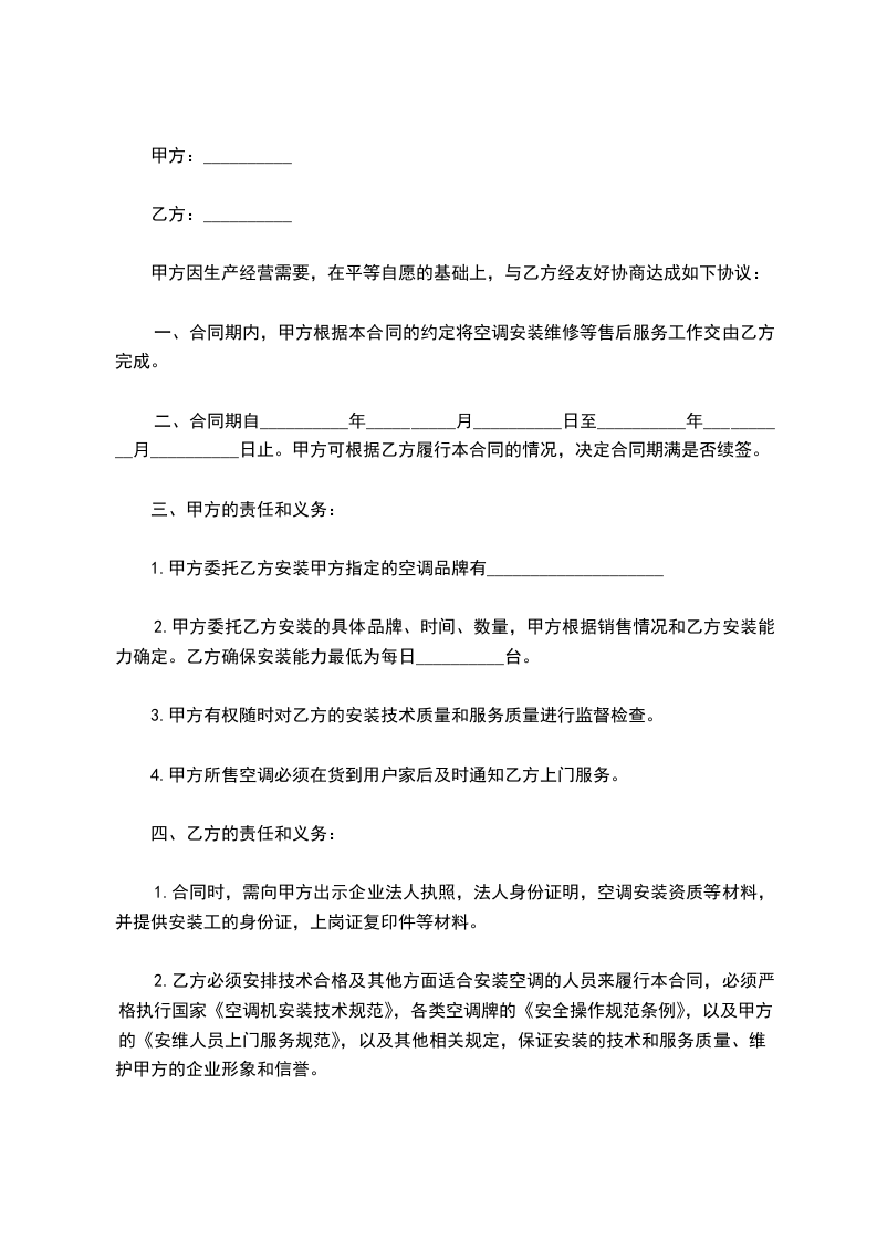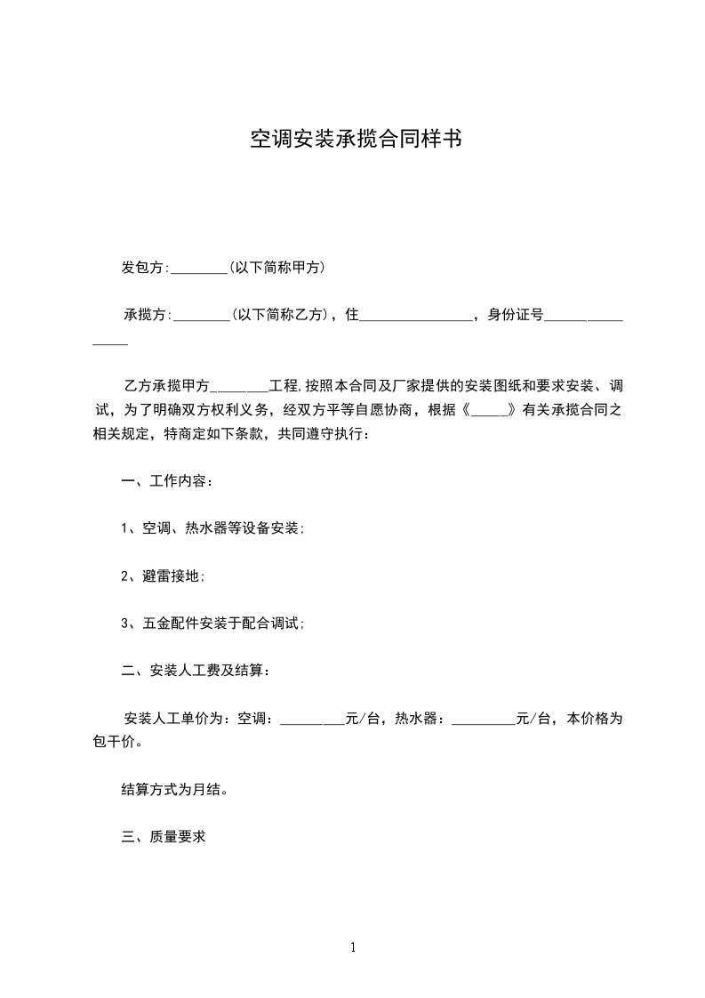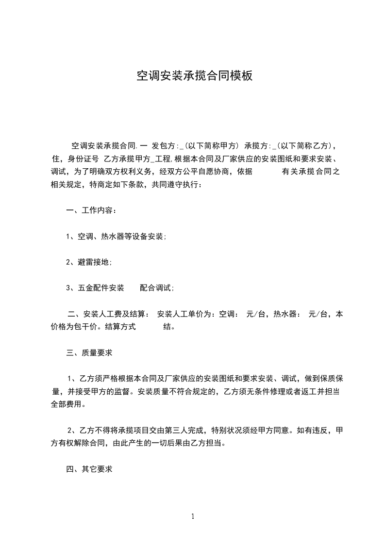 安装人工单价为:空调:_________元/台,热水器:_________元/台,本价格为包干价。