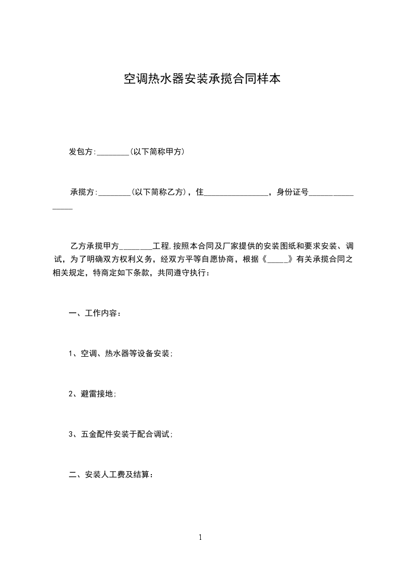 安装人工单价为:空调:_________元/台,热水器:_________元/台,本价格为包干价。