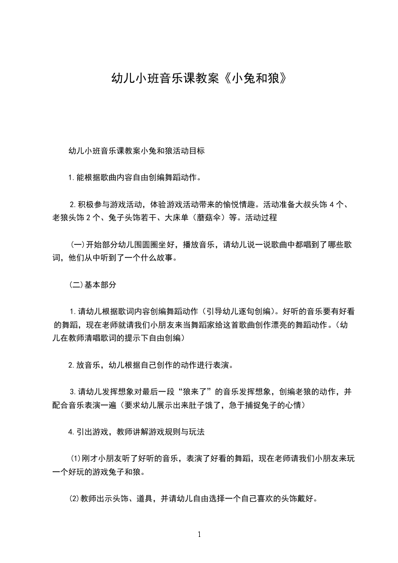 幼儿小班音乐课教案小兔和狼活动目标