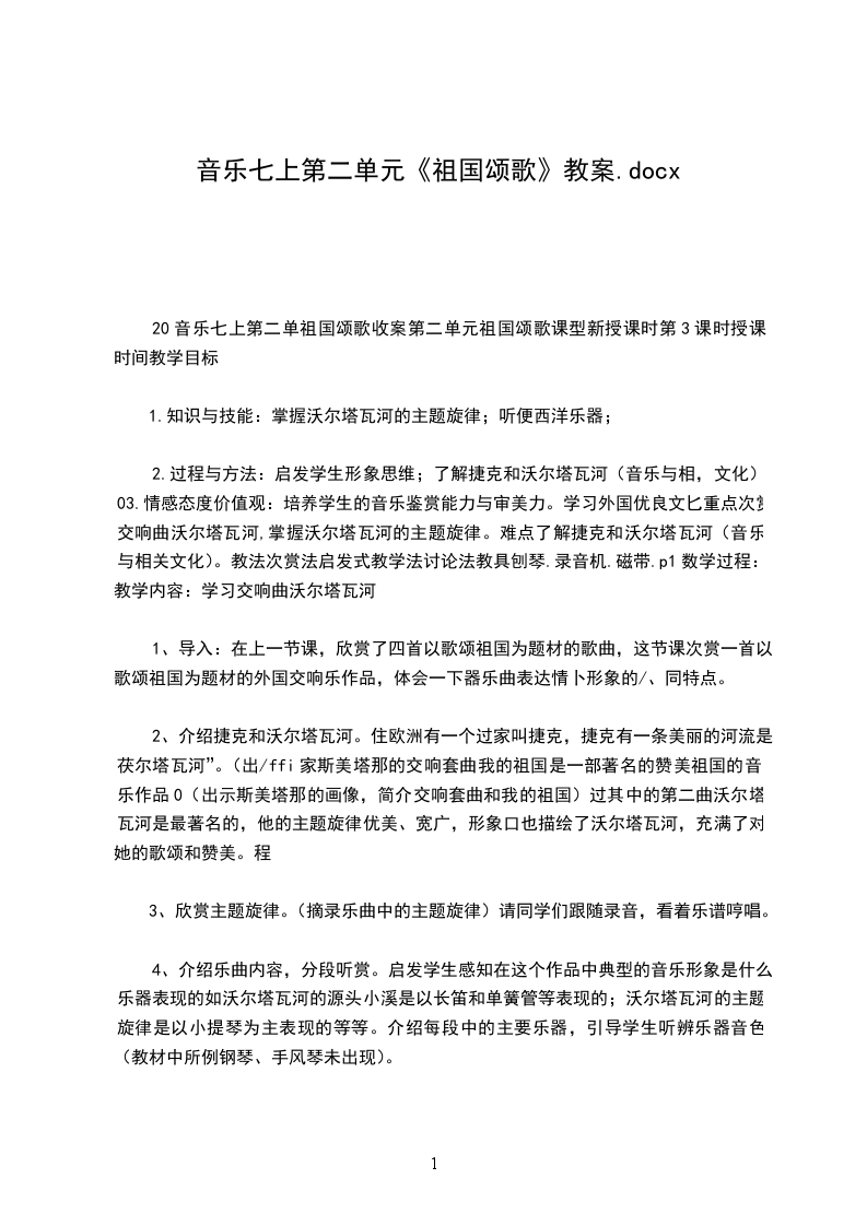 20音乐七上第二单祖国颂歌收案第二单元祖国颂歌课型新授课时第3课时授课时间教学目标