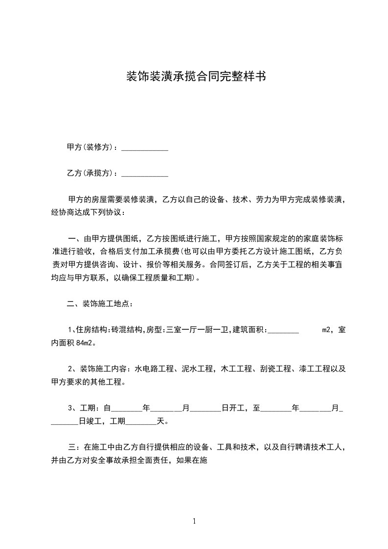1.装修施工地点:_____________________________________________