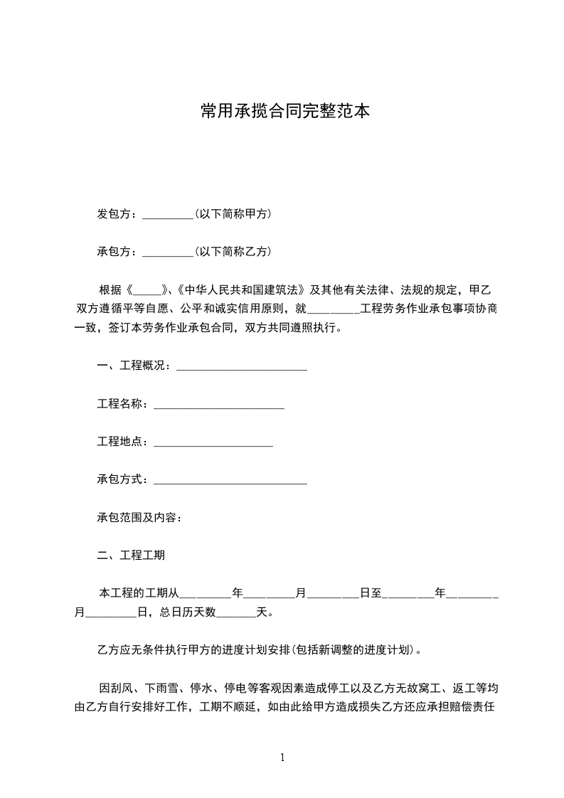 2.工期:_________年_______月_______日至________年_______月_______日