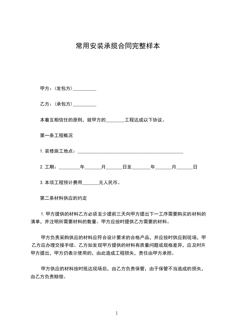 第二条材料供应的约定