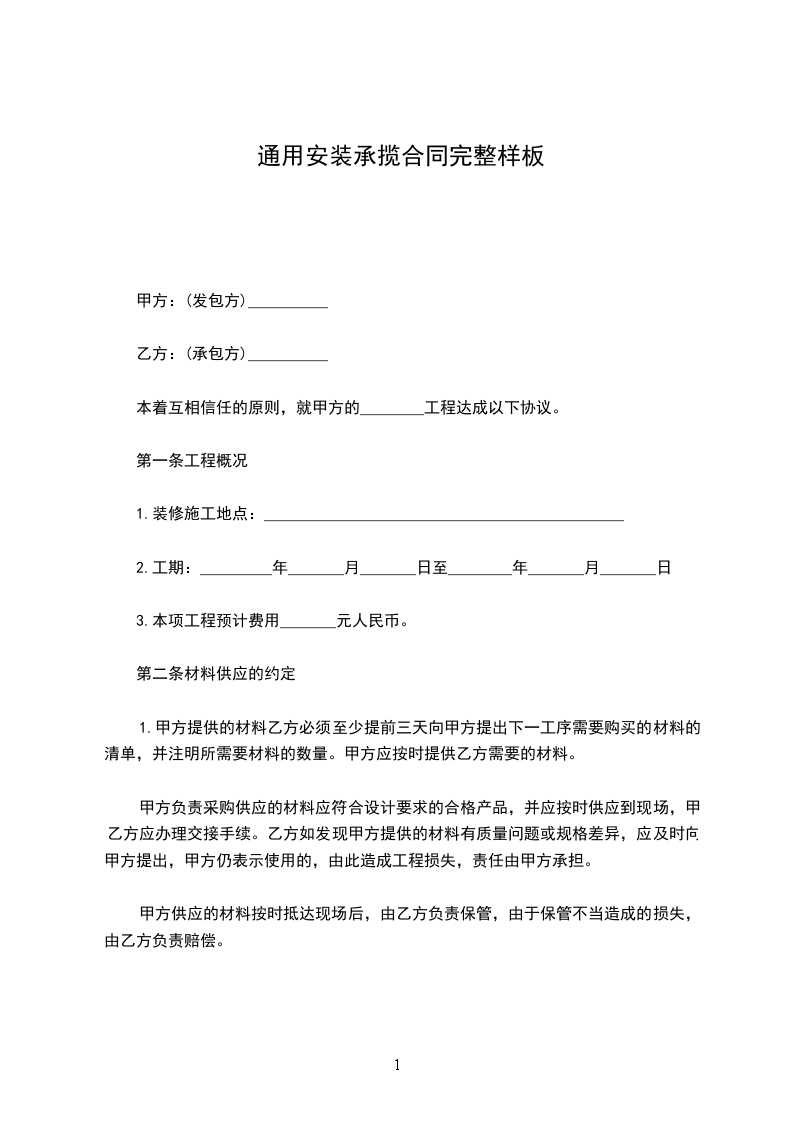 第二条材料供应的约定