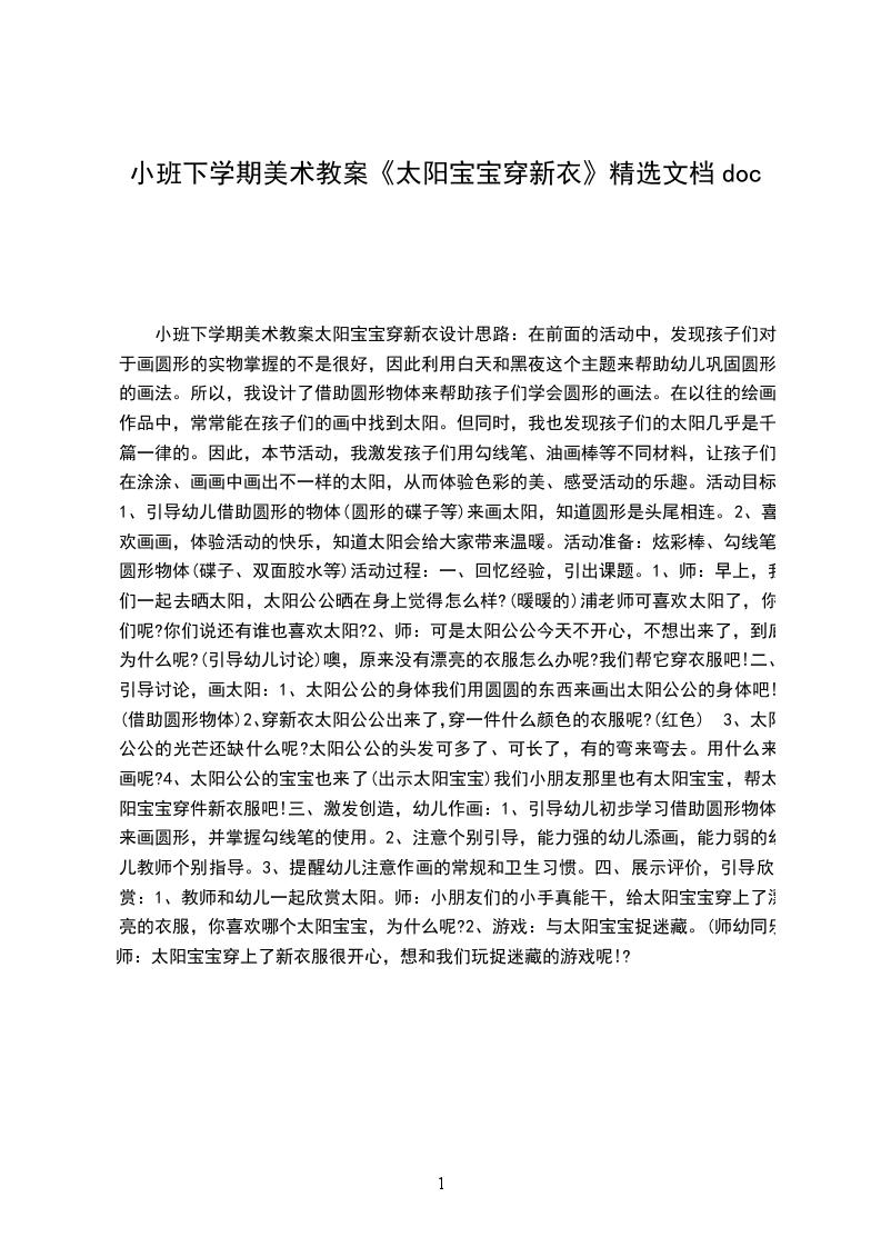 1、教师和幼儿一起欣赏太阳。师:小朋友们的小手真能干,给太阳宝宝穿上了漂亮的衣服,你喜欢哪个太阳宝宝,为什么呢