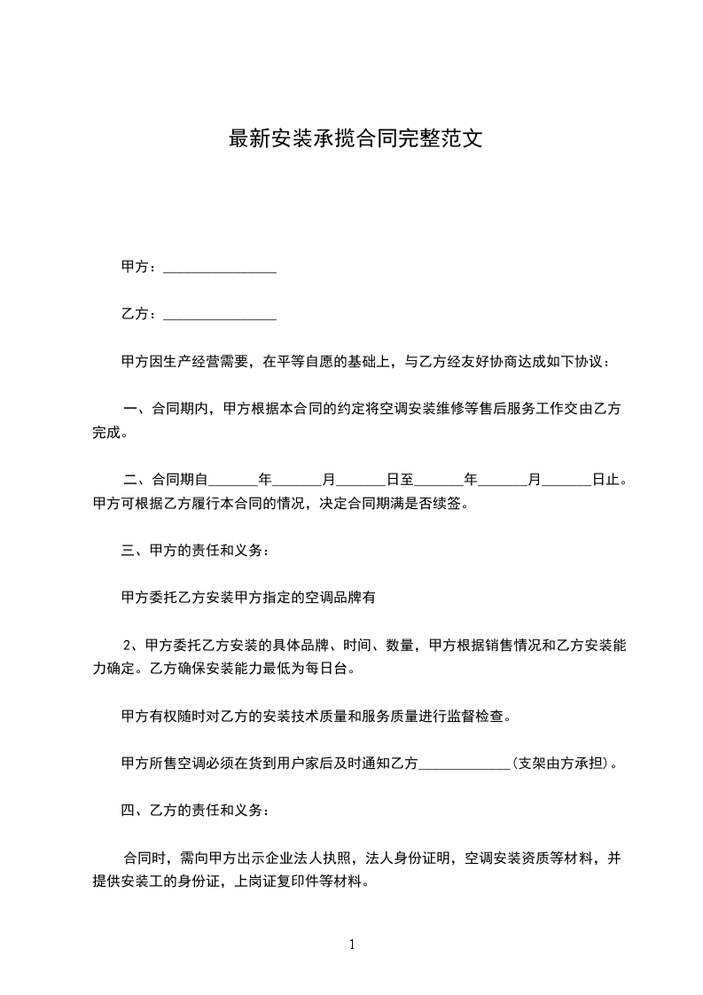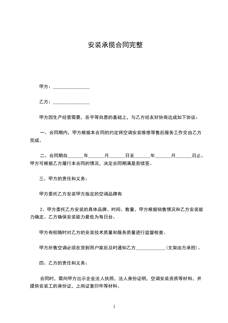一、合同期内,甲方根据本合同的约定将空调安装维修等售后服务工作交由乙方完成。