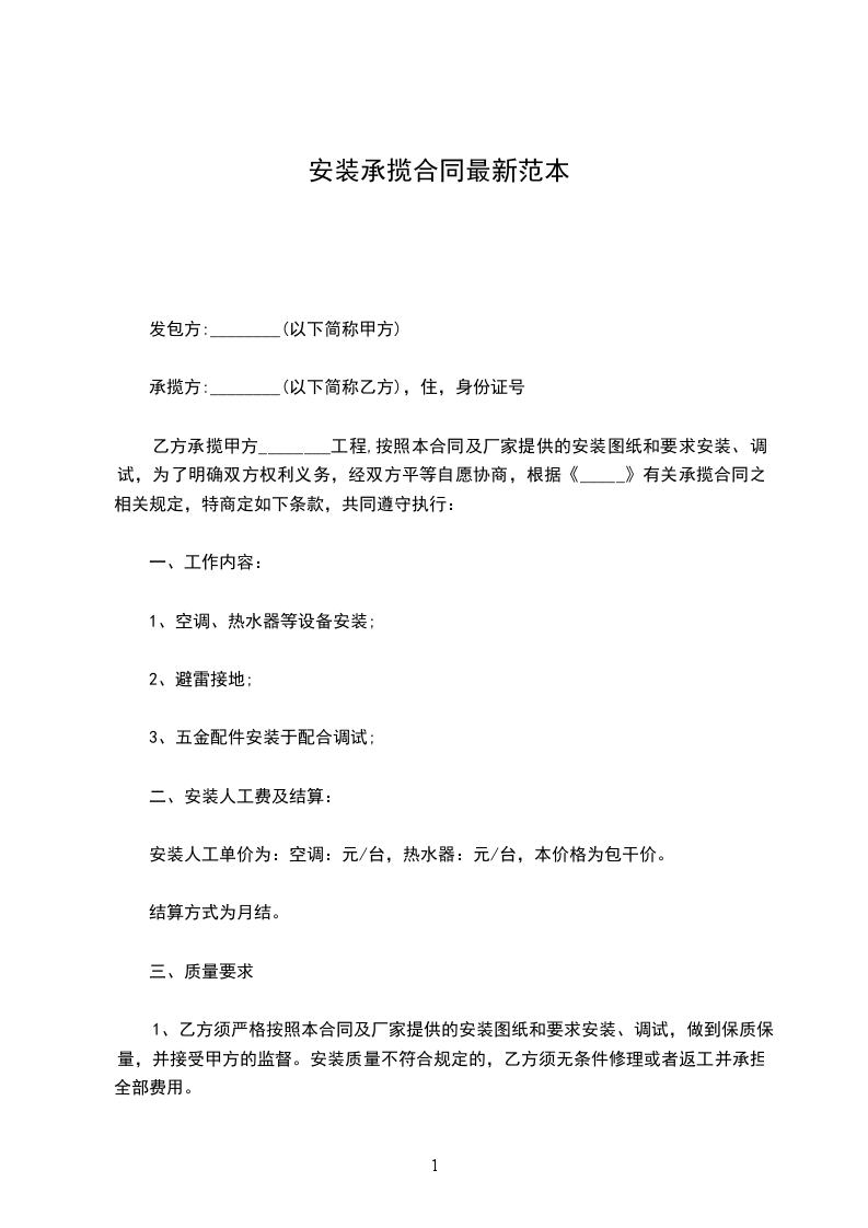 1、乙方当天如未能完成甲方安排或乙方确认的安装量,乙方按未完成空调安装卡结算费用的5倍数额向甲方支付违约金。