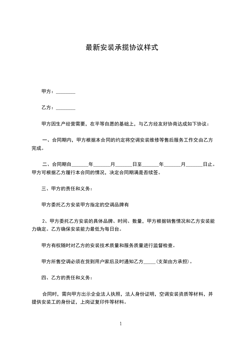 2、甲方委托乙方安装的具体品牌、时间、数量,甲方根据销售情况和乙方安装能力确定。乙方确保安装能力最低为每日台。