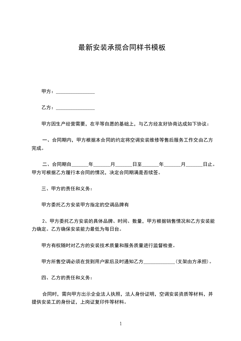 2、乙方必须安排技术合格及其他方面适合安装空调的人员来履行本合同,必须严格执行国家《空调机安装技术规范》,各类空调牌的《安全操作规范条例》,以及甲方的《安维人员_____________规范》,以及其他相关规定,保证安装的技术和服务质量、维护甲方的企业形象和信誉。