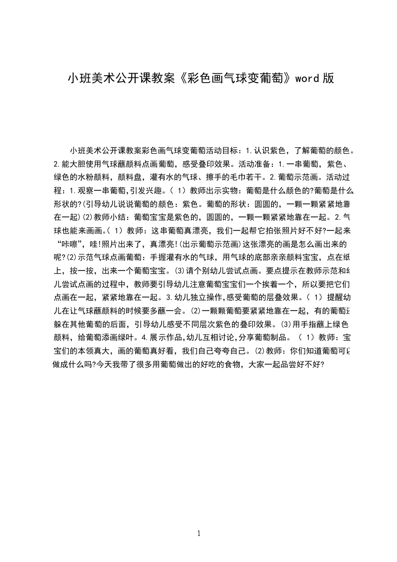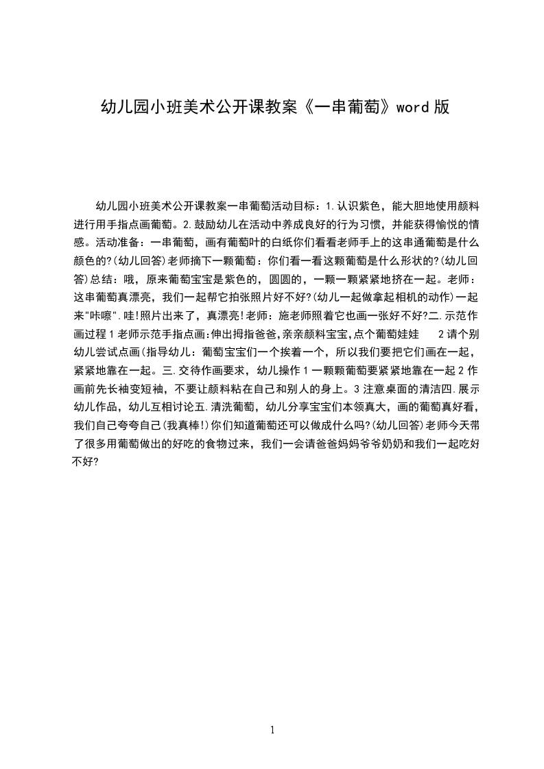 5、展示幼儿作品,引导幼儿相互评价。教师:你是怎么用叠印的方法表现水灵灵的葡萄的你在面一串葡萄的时候遇到了什么问题【评析】由于幼儿空间概念的限制,对于一串葡萄的表现会有一定闲难,有的葡萄会越砌越小如果遇到这样的问题,教师不要着急,可以用情景化的语言指导,例如"大大的葡萄才好吃哦!"。
