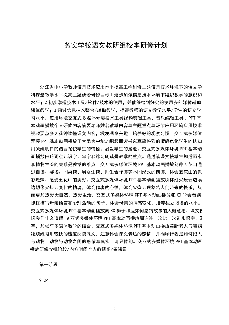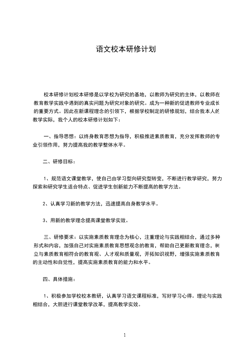 四、研修内容根据个人工作特点制定一年的进展研修方案,努力结合自己日常的训练教学工作,做到在学习中理论,在理论中学习;在工作中思索,在思索中理论;在反思中改良,在改良中提升,使研修、工作、进展同步推动。
