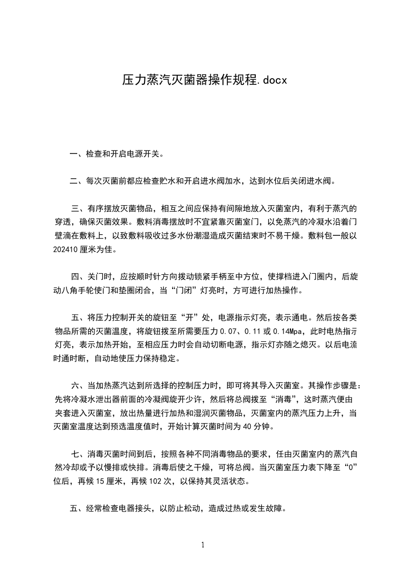 七、灭菌器应在完好情况下进行操作,并由专职保养人员或熟悉业务者定期维护,以使正常运行,避免发生事故。