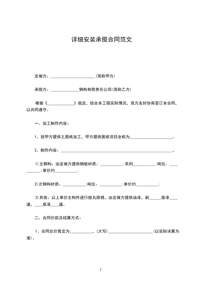 承包价款按建筑面积每平方米_________元计算,总承包价款暂定为_________元。