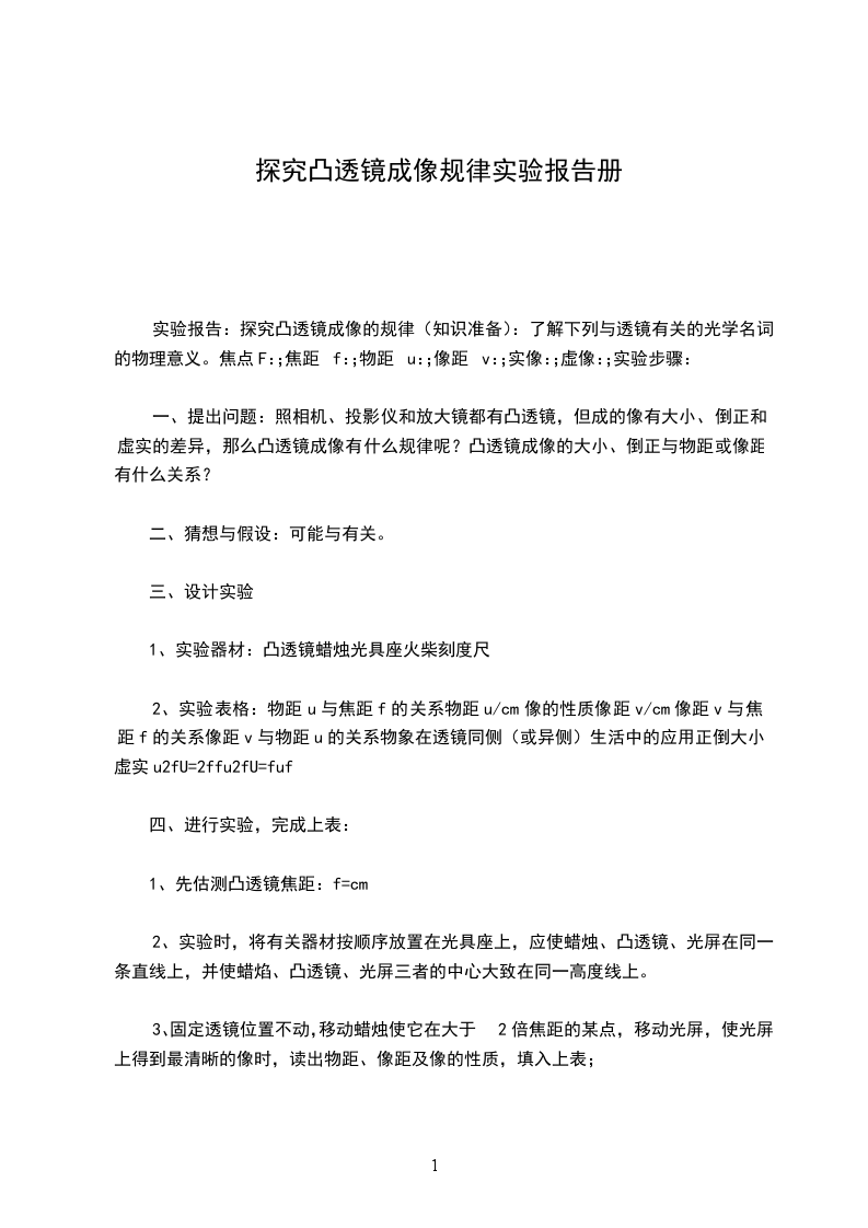 (1)实验要求u>2f、2f>u>f、uvf,每个范围的物距改变3次,记录物距和对应的像距以及成像的特点;在缓慢地由远到近移动蜡烛的过程,注意当移动到焦距的整数倍的位置(如u2f,uf)成像情况及像距,并记录在表格中;实验结束,小组内分析实验数据,比较每种成像情况时像距与焦距有怎样的关系并填写在表格当中。fcm实验记录像的性质物距u(cm)像距v(cm)大小正倒虚实同异u>2fu2f2f>u>fufuvf